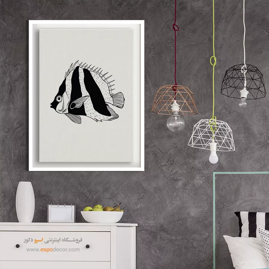 همچنین، استفاده از تابلوهای چندتکه با ابعاد کوچک تا متوسط یا یک تابلوی بزرگ با طرح عمودی (برای بلندتر نشان دادن سقف)، می‌تواند نقطه کانونی جذابی ایجاد کرده و کمبود نور را جبران نماید.