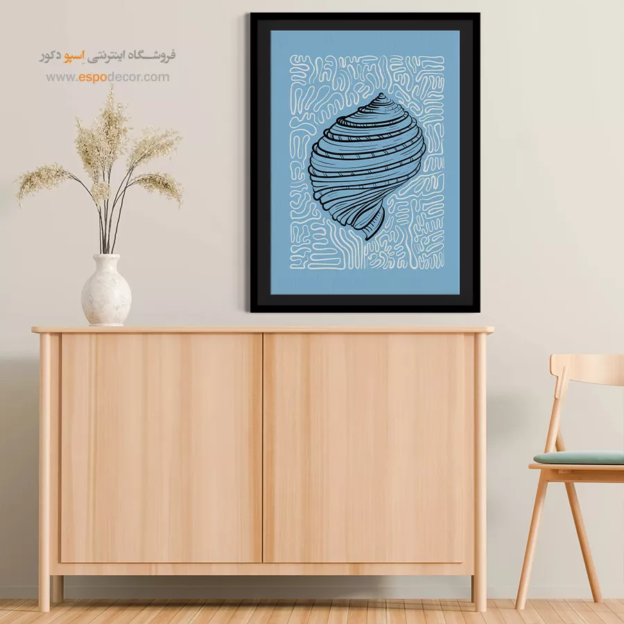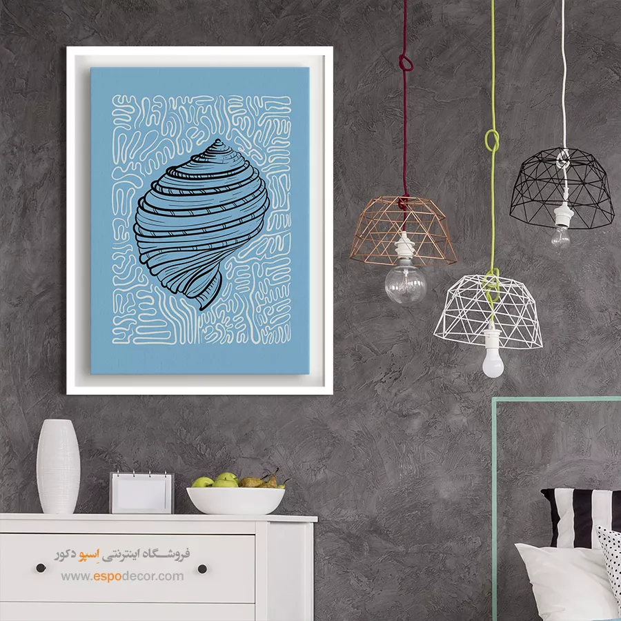 • انتخاب سایه‌های مختلف از رنگ دیوار: مانند تابلو آبی تیره روی دیوار آبی روشن، که حس آرامش و یکپارچگی در فضا ایجاد می‌کند.