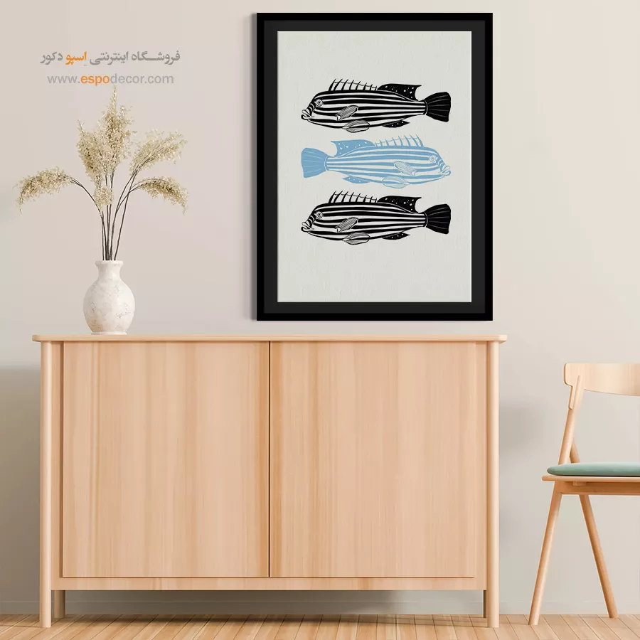 • انتخاب سایه‌های مختلف از رنگ دیوار: مانند تابلو آبی تیره روی دیوار آبی روشن، که حس آرامش و یکپارچگی در فضا ایجاد می‌کند.