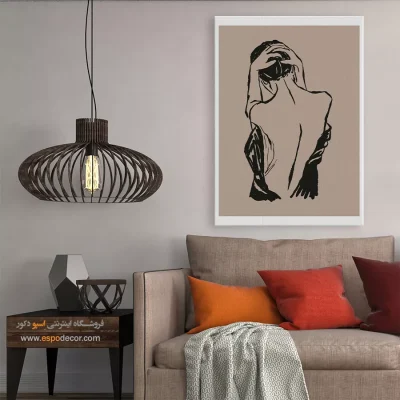 همچنین، استفاده از تابلوهای چندتکه با ابعاد کوچک تا متوسط یا یک تابلوی بزرگ با طرح عمودی (برای بلندتر نشان دادن سقف)، می‌تواند نقطه کانونی جذابی ایجاد کرده و کمبود نور را جبران نماید.
