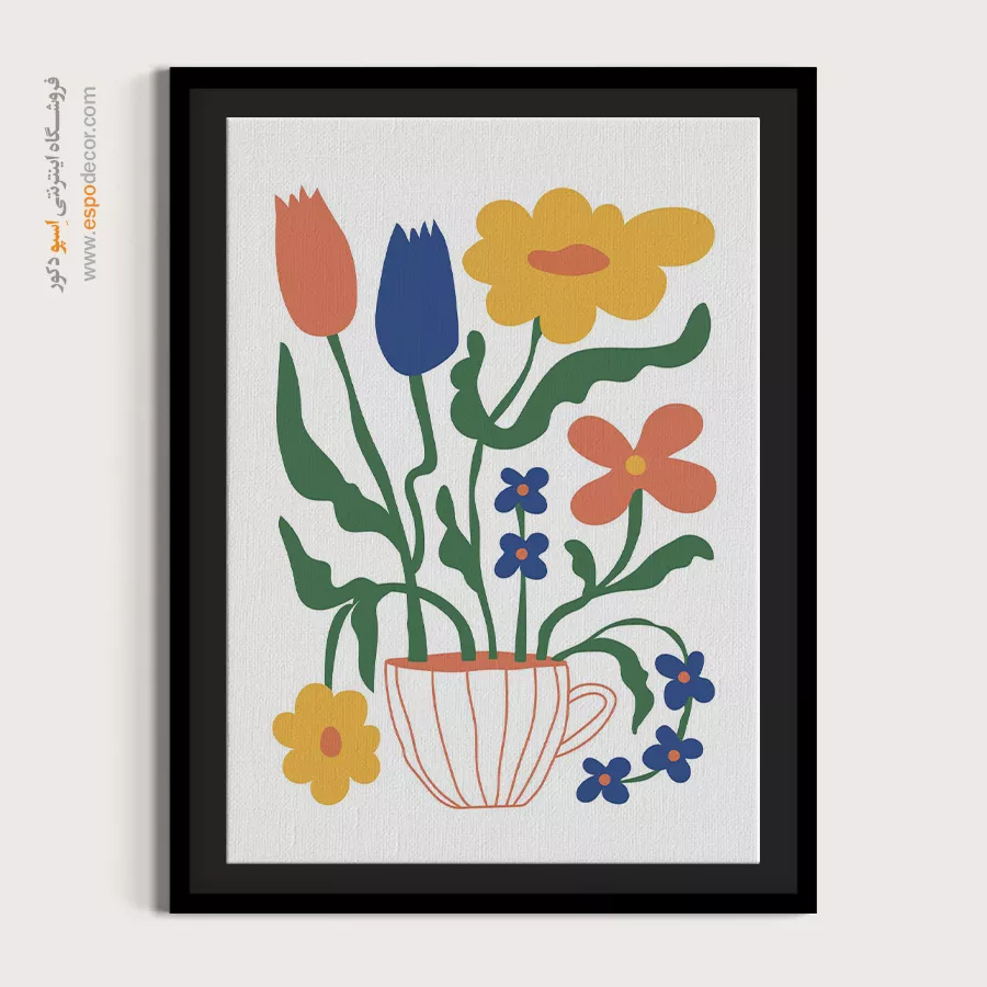 • ادامه طرح اصلی تا کناره‌های بوم: ما در اسپو دکور از این روش استفاده می‌کنیم تا تابلو حالت منسجم و یکپارچه داشته باشد و از نمای کناری نیز جذاب دیده شود.