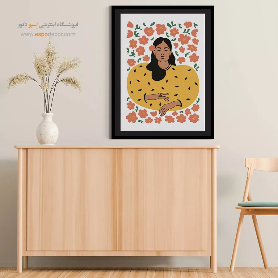 خرید تابلو مینیمال گل - فانتزی – تابلو طراحی خطی - اسپو دکور
