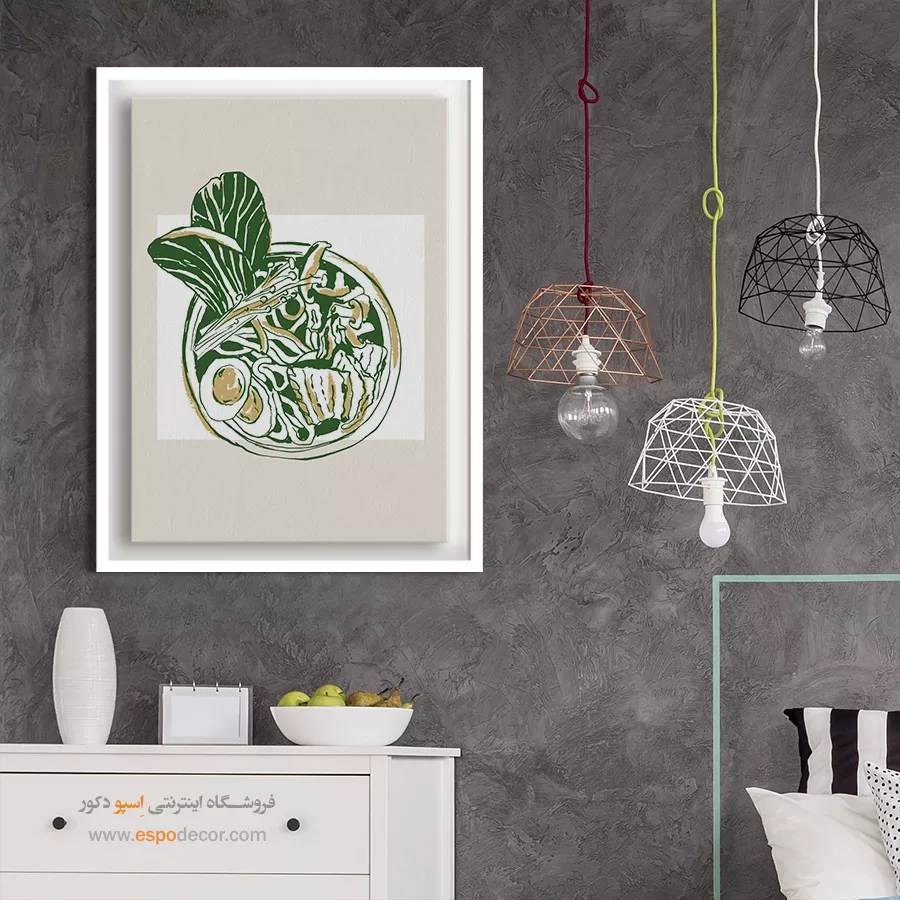 سبک مدرن: آثار انتزاعی، طرح‌های گرافیکی جسورانه و استفاده از رنگ‌های قوی به عنوان یک نقطه کانونی دکوراسیون پیشنهاد می‌شود. تابلوهای چندتکه یا بوم‌های بزرگ با قاب‌های باریک و ساده، تکمیل‌کننده این فضا خواهند بود.