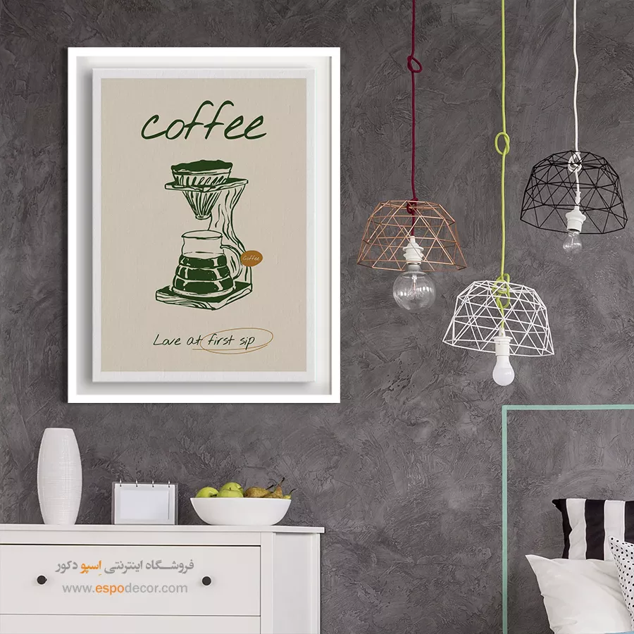 همچنین، استفاده از تابلوهای چندتکه با ابعاد کوچک تا متوسط یا یک تابلوی بزرگ با طرح عمودی (برای بلندتر نشان دادن سقف)، می‌تواند نقطه کانونی جذابی ایجاد کرده و کمبود نور را جبران نماید.
