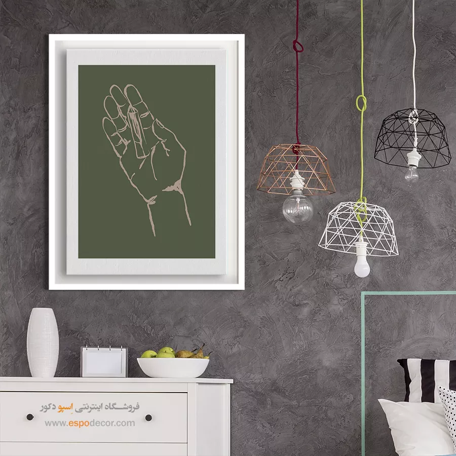• استفاده از شابلون کاغذی (توصیه می‌شود): بهترین روش این است که کاغذ یا مقوا را به اندازه دقیق هر تابلو برش دهید و با چسب نواری کم‌چسب (مثل چسب کاغذی) موقتاً روی دیوار بچسبانید تا جایگاه نهایی و فاصله مناسب بین آن‌ها مشخص شود.
