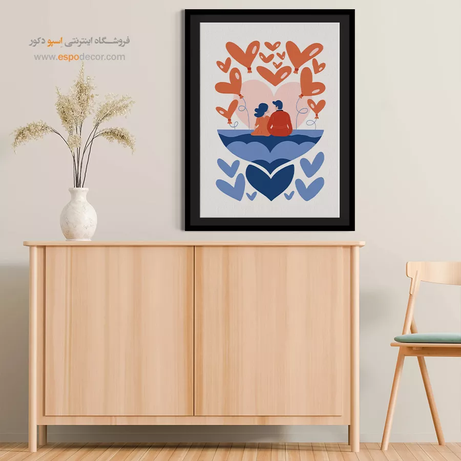 • انتخاب رنگ‌های مکمل یا متضاد: مانند تابلویی با تناژ نارنجی برای دیوار آبی، که تضاد جذاب و پویایی ایجاد می‌کند و تابلو را به نقطه کانونی تبدیل می‌کند.