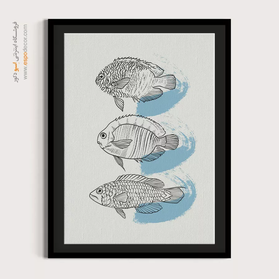 • انتخاب سایه‌های مختلف از رنگ دیوار: مانند تابلو آبی تیره روی دیوار آبی روشن، که حس آرامش و یکپارچگی در فضا ایجاد می‌کند.