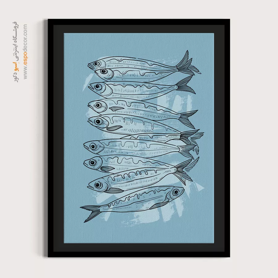 • انتخاب سایه‌های مختلف از رنگ دیوار: مانند تابلو آبی تیره روی دیوار آبی روشن، که حس آرامش و یکپارچگی در فضا ایجاد می‌کند.