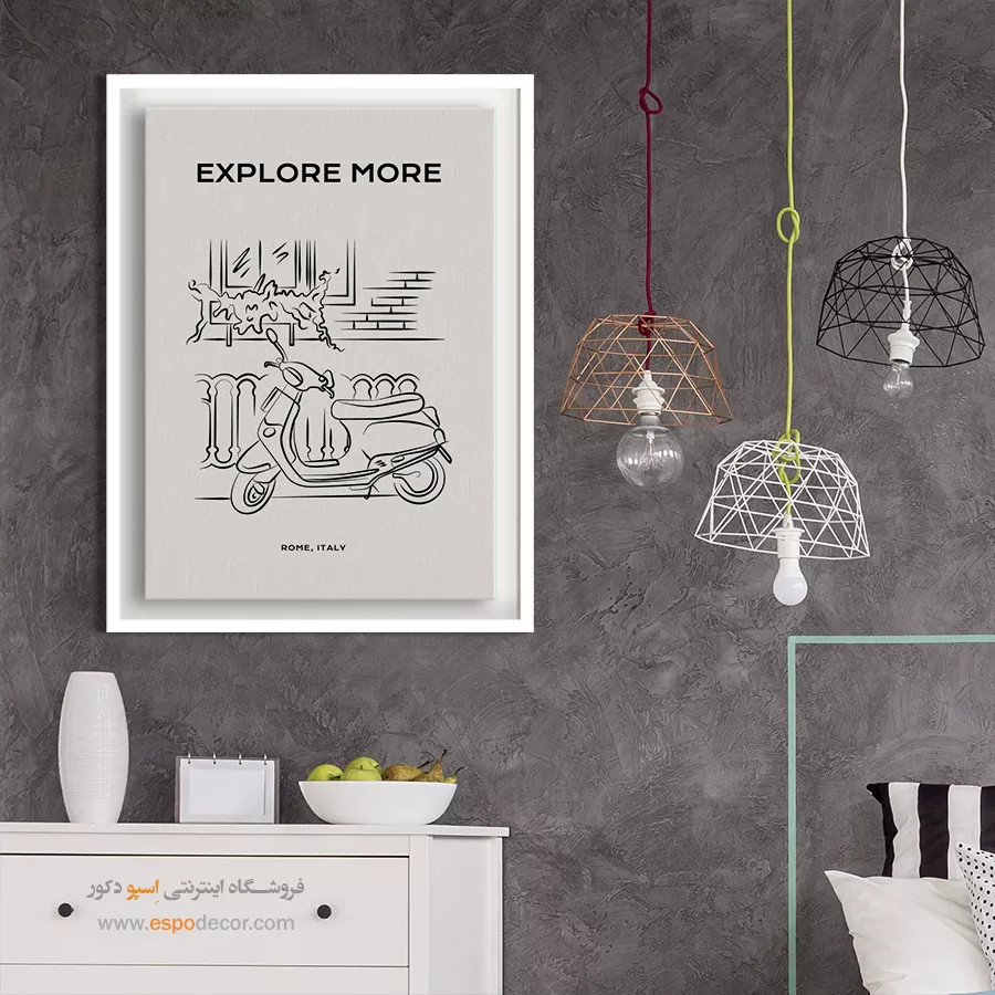 • ادامه طرح اصلی تا کناره‌های بوم: ما در اسپو دکور از این روش استفاده می‌کنیم تا تابلو حالت منسجم و یکپارچه داشته باشد و از نمای کناری نیز جذاب دیده شود.
