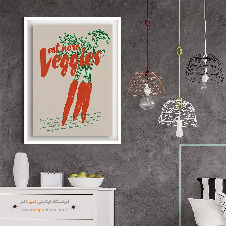 همچنین، استفاده از تابلوهای چندتکه با ابعاد کوچک تا متوسط یا یک تابلوی بزرگ با طرح عمودی (برای بلندتر نشان دادن سقف)، می‌تواند نقطه کانونی جذابی ایجاد کرده و کمبود نور را جبران نماید.