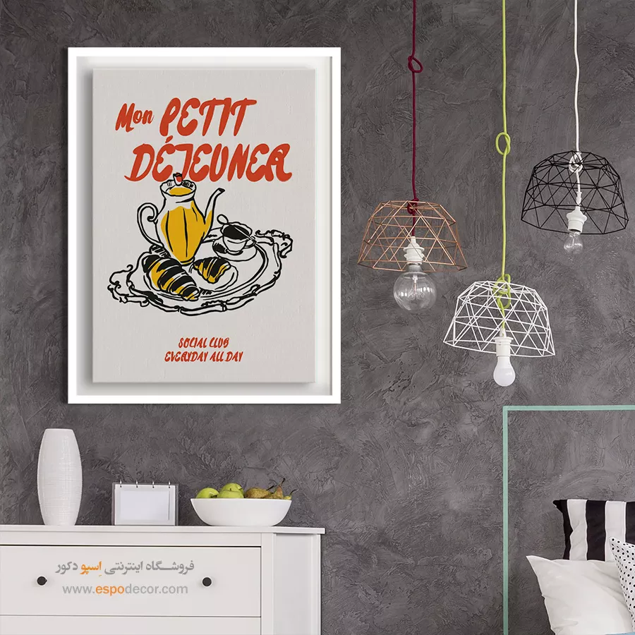 سبک مدرن: آثار انتزاعی، طرح‌های گرافیکی جسورانه و استفاده از رنگ‌های قوی به عنوان یک نقطه کانونی دکوراسیون پیشنهاد می‌شود. تابلوهای چندتکه یا بوم‌های بزرگ با قاب‌های باریک و ساده، تکمیل‌کننده این فضا خواهند بود.