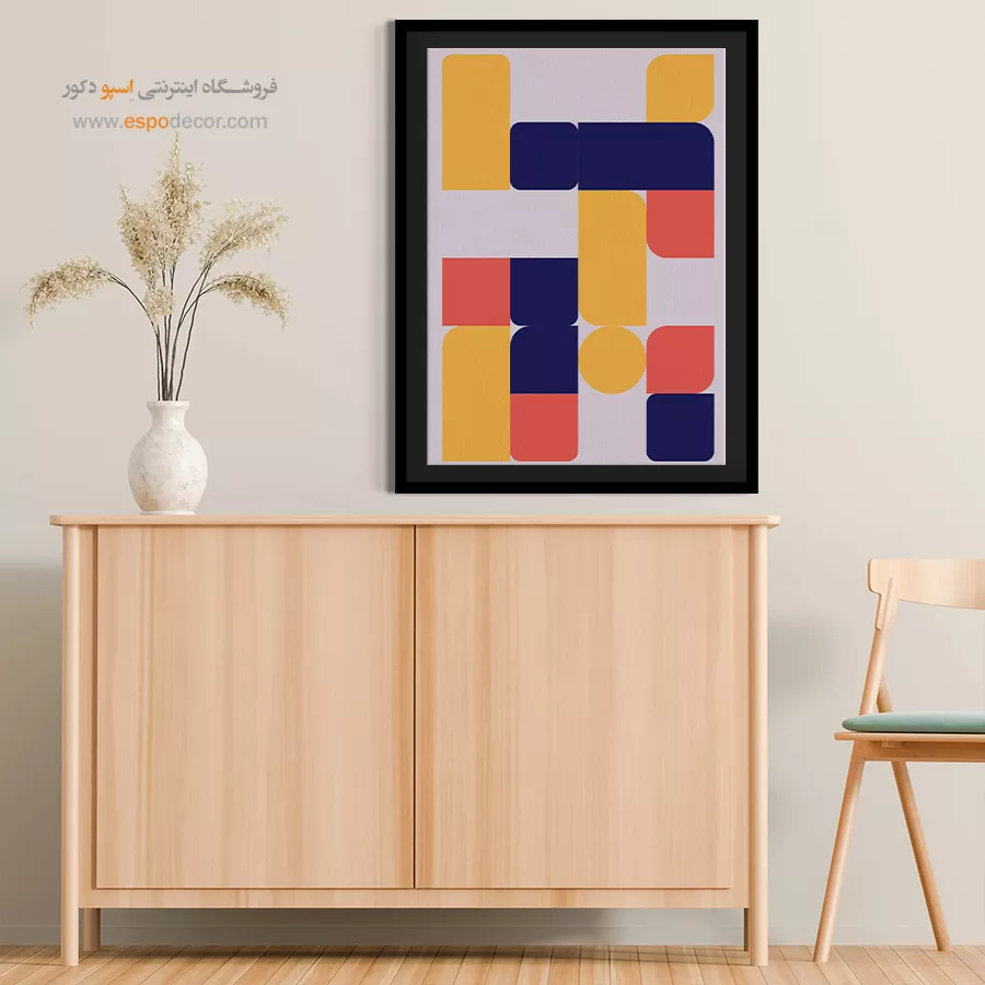 سبک مینیمال: تمرکز بر سادگی است. تابلوهای مینیمال آرت با خطوط ساده، اشکال هندسی و پالت رنگی خنثی (مانند سیاه، سفید، خاکستری یا بژ) ایده‌آل هستند. این تابلوها اغلب بدون قاب یا با کلاف ساده نصب می‌شوند تا تأکید بر مفهوم و فضای خالی باشد.