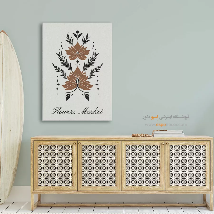 • ادامه طرح اصلی تا کناره‌های بوم: ما در اسپو دکور از این روش استفاده می‌کنیم تا تابلو حالت منسجم و یکپارچه داشته باشد و از نمای کناری نیز جذاب دیده شود.
