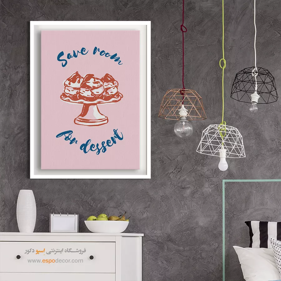 همچنین، استفاده از تابلوهای چندتکه با ابعاد کوچک تا متوسط یا یک تابلوی بزرگ با طرح عمودی (برای بلندتر نشان دادن سقف)، می‌تواند نقطه کانونی جذابی ایجاد کرده و کمبود نور را جبران نماید.