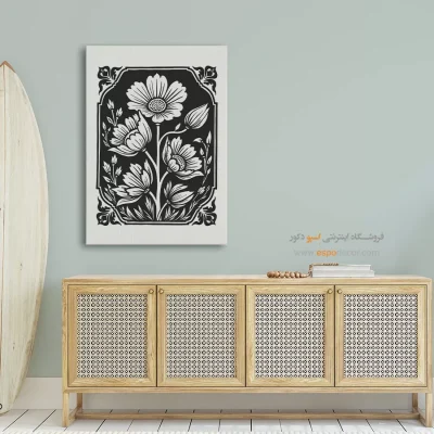 • ادامه طرح اصلی تا کناره‌های بوم: ما در اسپو دکور از این روش استفاده می‌کنیم تا تابلو حالت منسجم و یکپارچه داشته باشد و از نمای کناری نیز جذاب دیده شود.