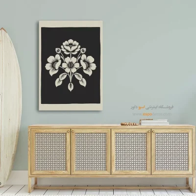 • ادامه طرح اصلی تا کناره‌های بوم: ما در اسپو دکور از این روش استفاده می‌کنیم تا تابلو حالت منسجم و یکپارچه داشته باشد و از نمای کناری نیز جذاب دیده شود.