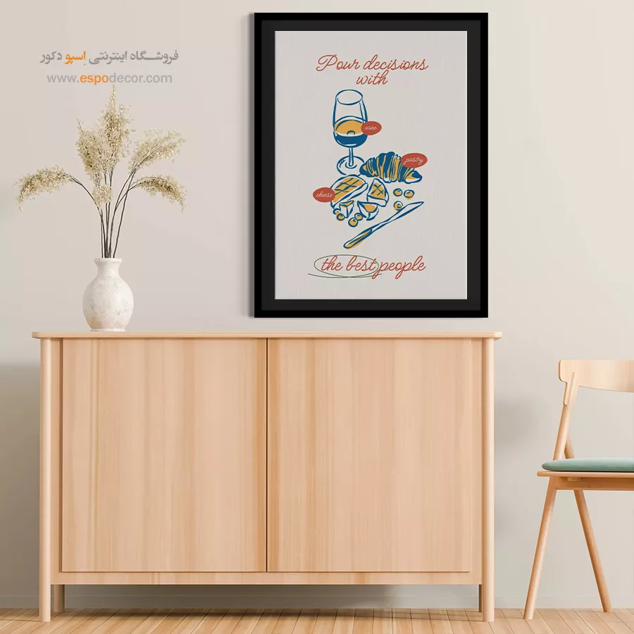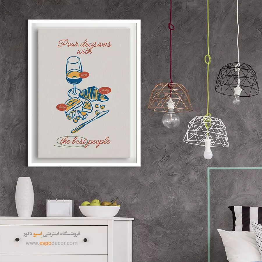 سبک مدرن: آثار انتزاعی، طرح‌های گرافیکی جسورانه و استفاده از رنگ‌های قوی به عنوان یک نقطه کانونی دکوراسیون پیشنهاد می‌شود. تابلوهای چندتکه یا بوم‌های بزرگ با قاب‌های باریک و ساده، تکمیل‌کننده این فضا خواهند بود.
