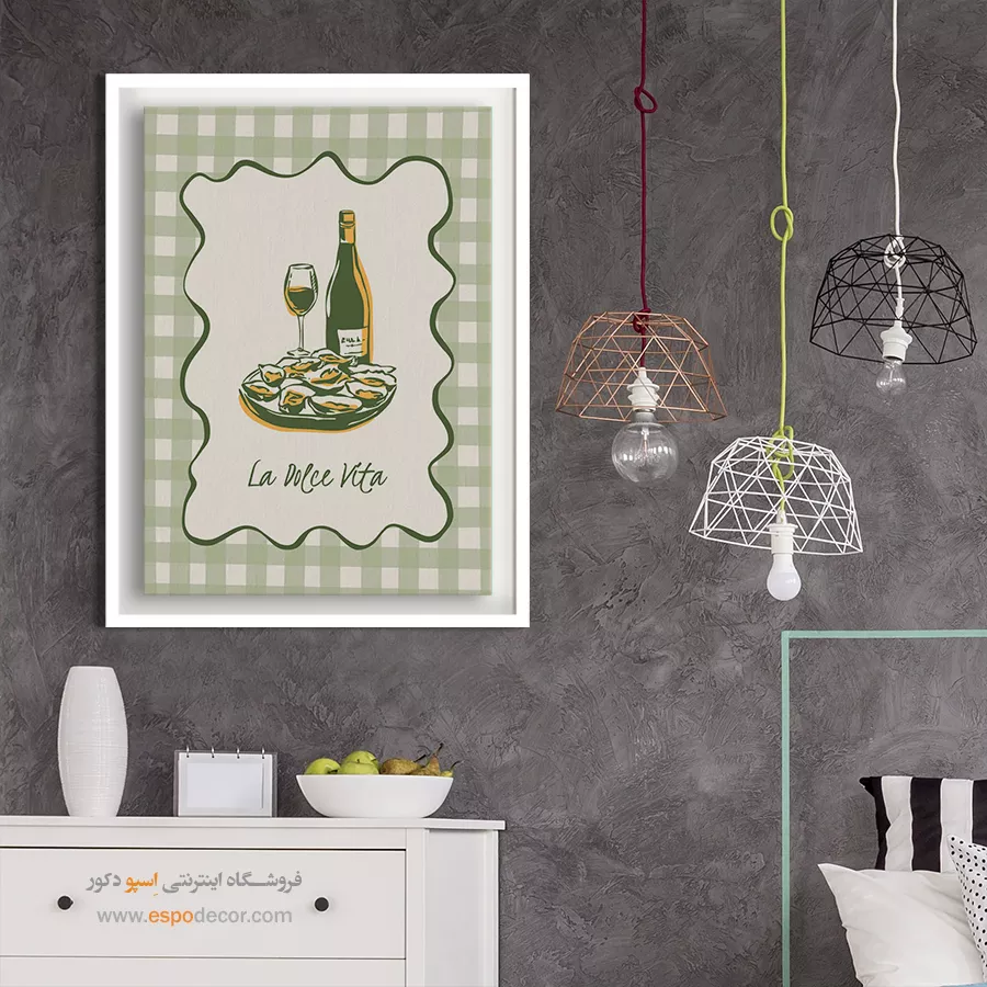 همچنین، استفاده از تابلوهای چندتکه با ابعاد کوچک تا متوسط یا یک تابلوی بزرگ با طرح عمودی (برای بلندتر نشان دادن سقف)، می‌تواند نقطه کانونی جذابی ایجاد کرده و کمبود نور را جبران نماید.