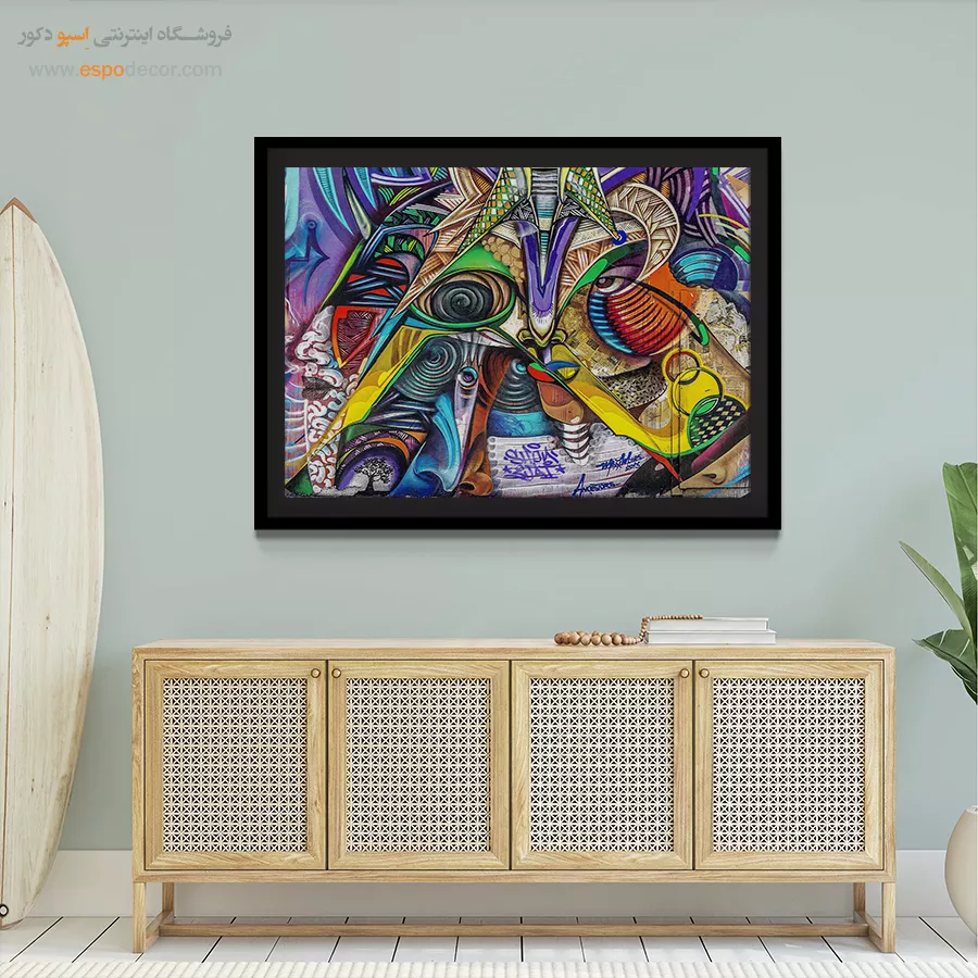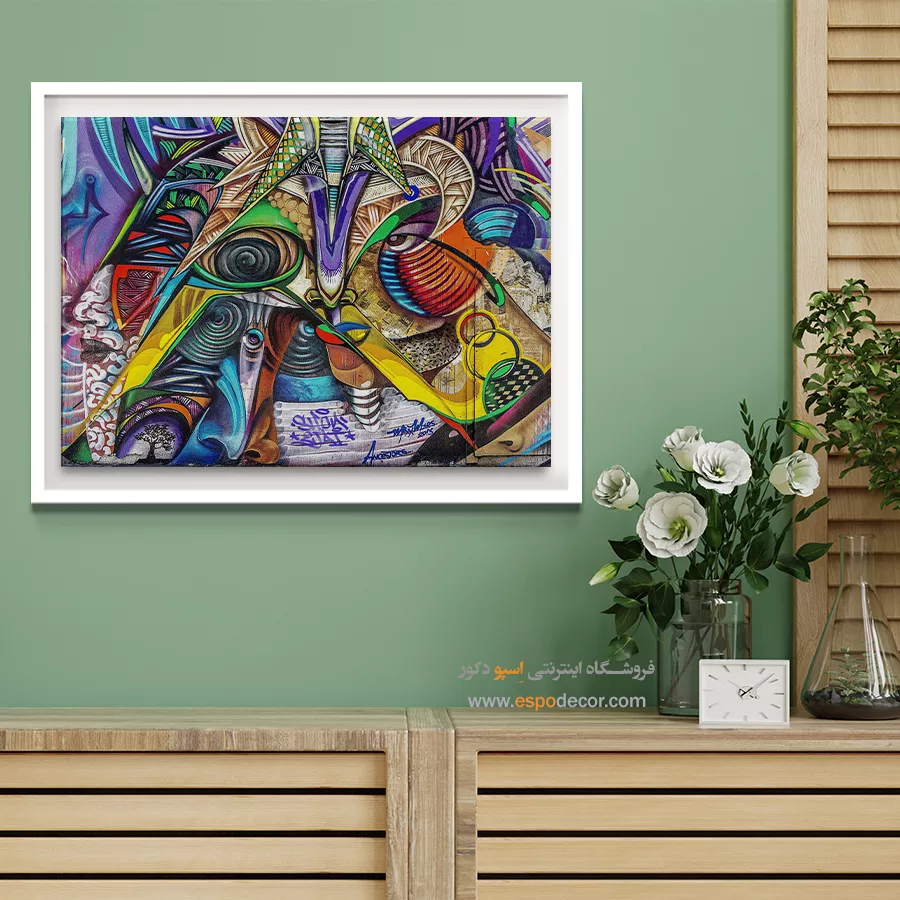 • ادامه طرح اصلی تا کناره‌های بوم: ما در اسپو دکور از این روش استفاده می‌کنیم تا تابلو حالت منسجم و یکپارچه داشته باشد و از نمای کناری نیز جذاب دیده شود.