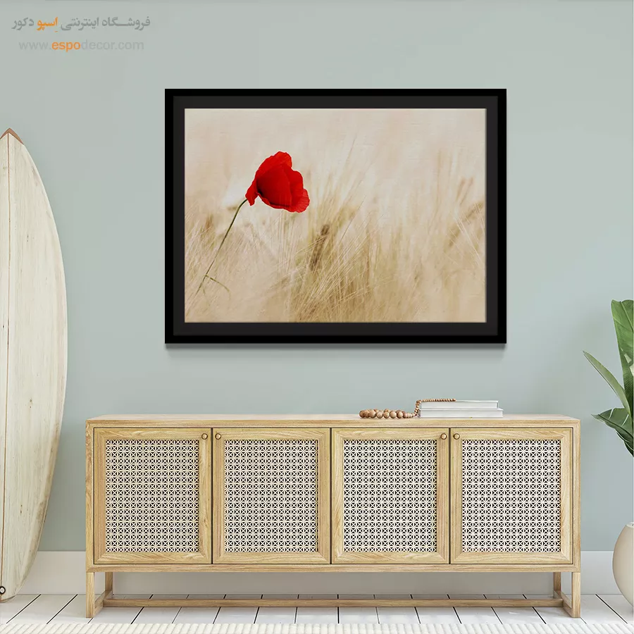 تصویری است که روی کاغذ عکاسی یا متریال صاف چاپ شده و مستقیماً روی یک تخته چوبی صاف (معمولاً MDF یا فیبر) با ضخامت کم پرس میشود و فاقد هرگونه قاب و پوشش شیشهای است. - تابلو قابدار معمولی: