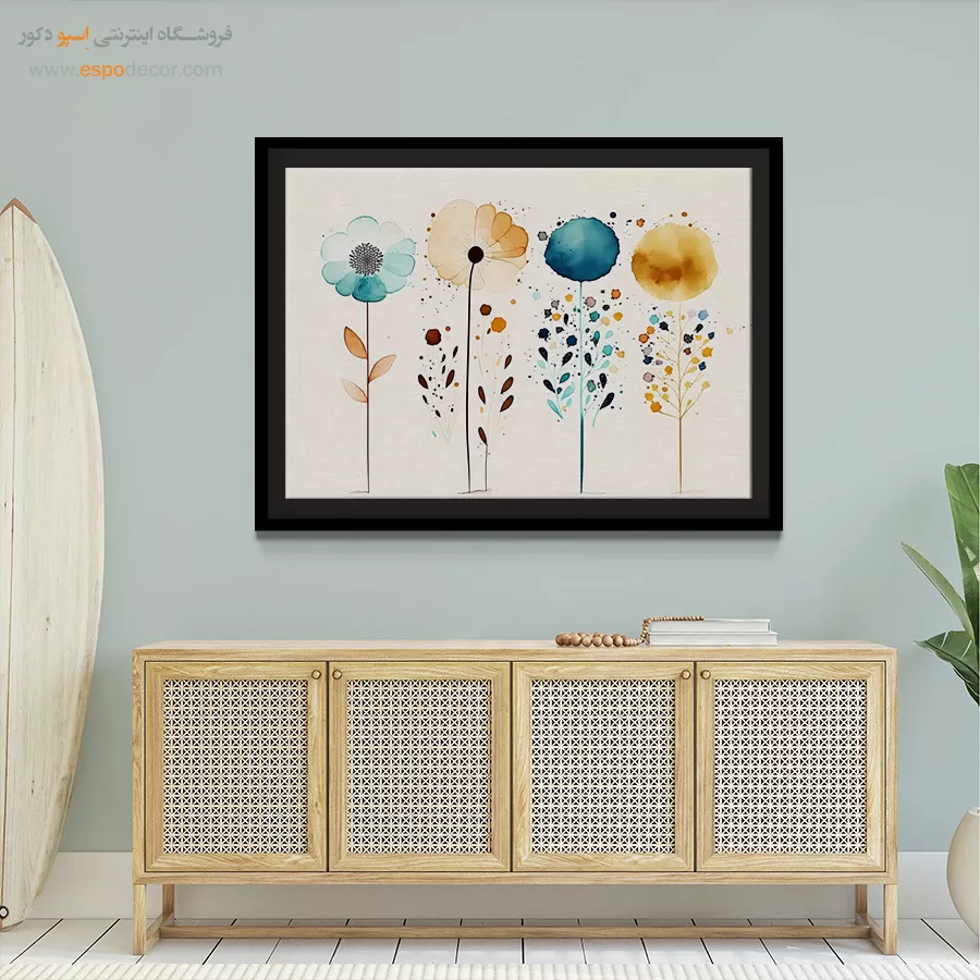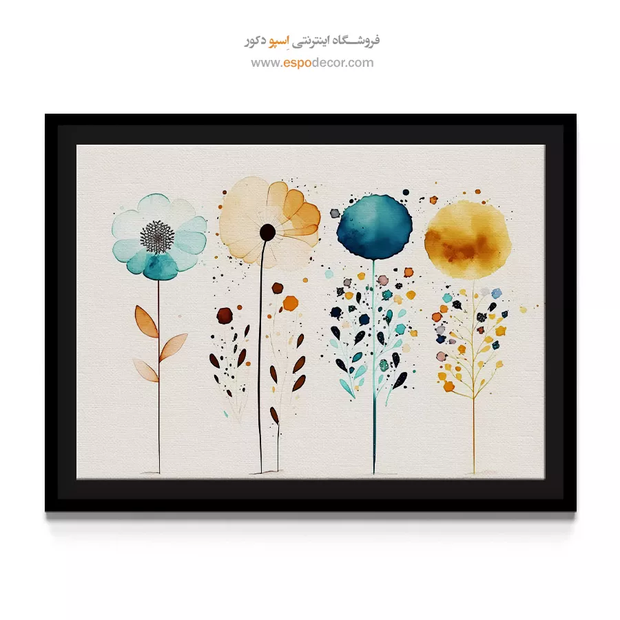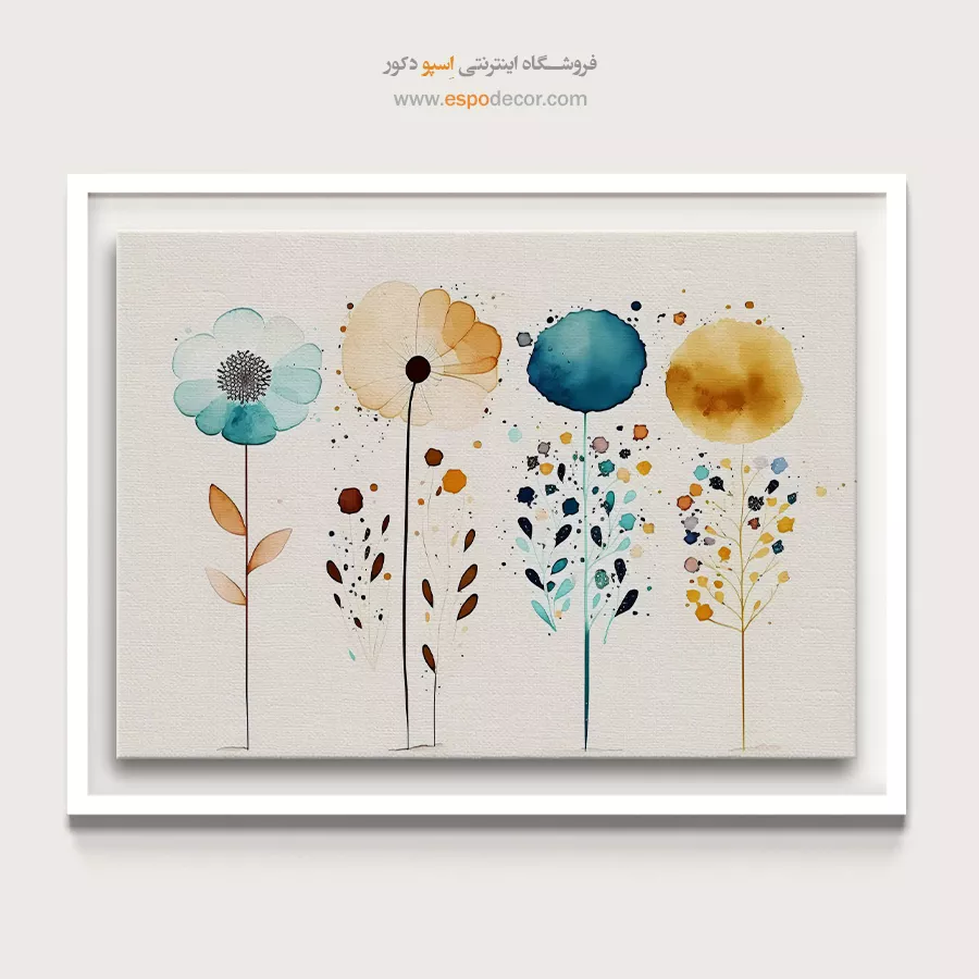 - ادامه طرح اصلی تا کنارههای بوم: ما در اسپو دکور از این روش استفاده میکنیم تا تابلو حالت منسجم و یکپارچه داشته باشد و از نمای کناری نیز جذاب دیده شود.