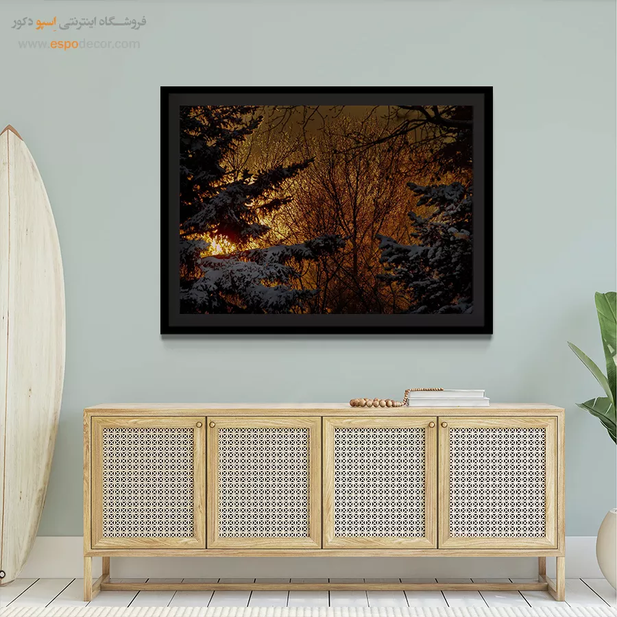 تصویری است که روی کاغذ عکاسی یا متریال صاف چاپ شده و مستقیماً روی یک تخته چوبی صاف (معمولاً MDF یا فیبر) با ضخامت کم پرس میشود و فاقد هرگونه قاب و پوشش شیشهای است. - تابلو قابدار معمولی: