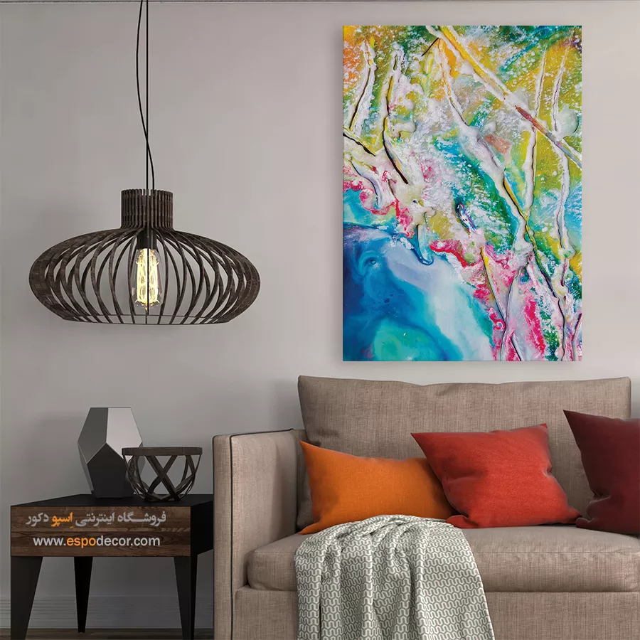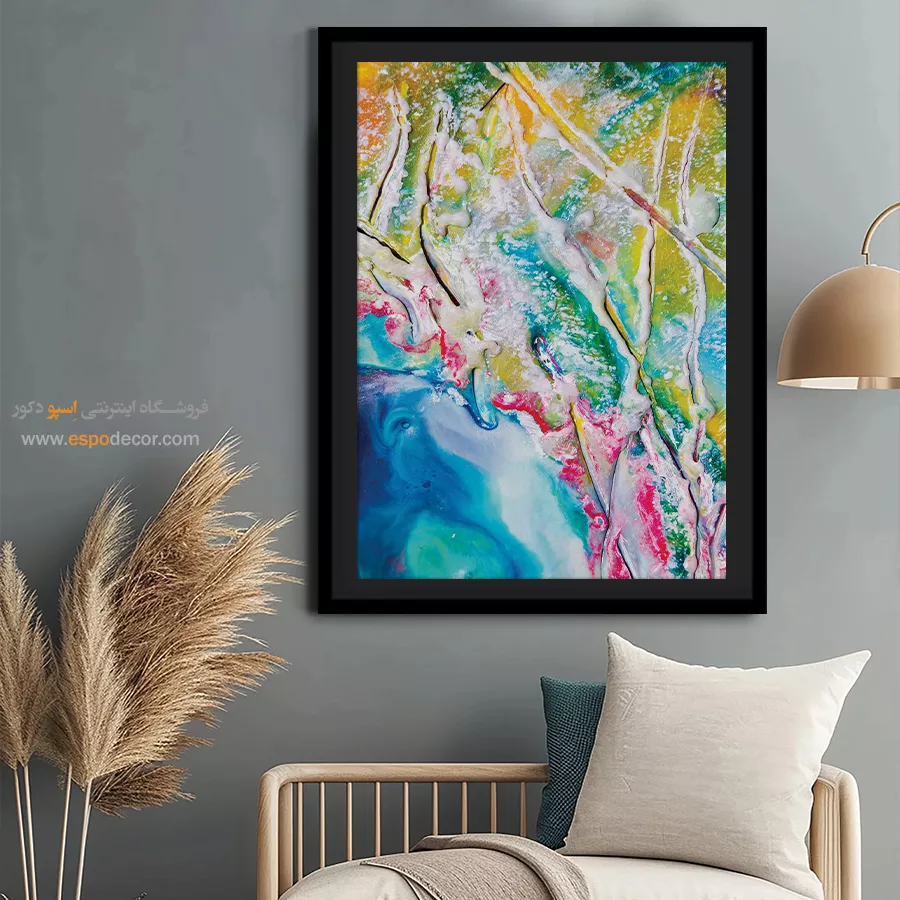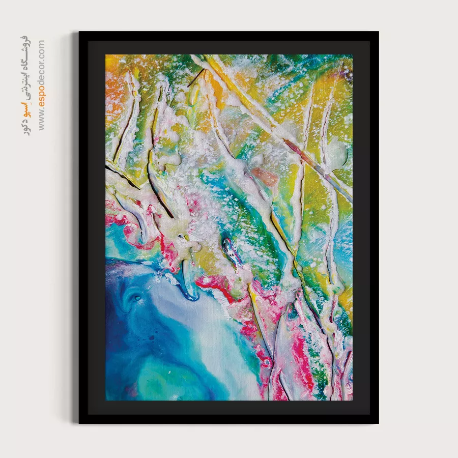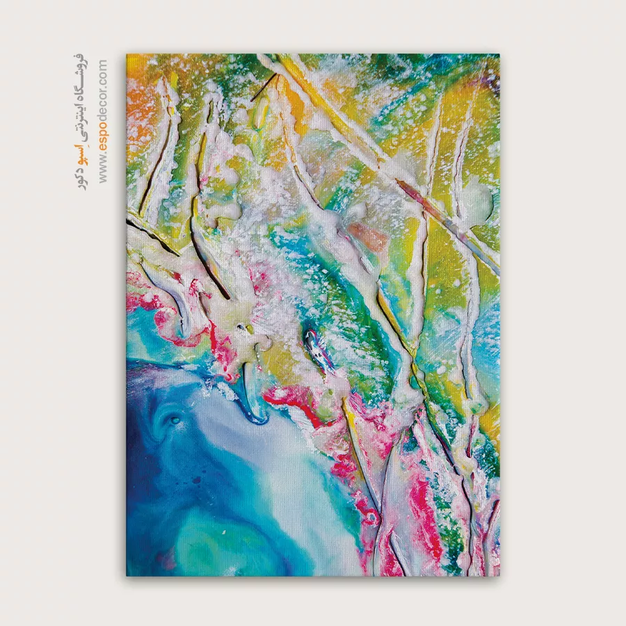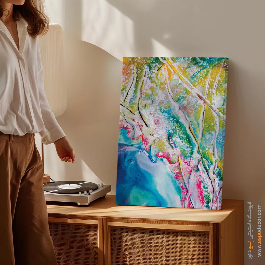 • ادامه طرح اصلی تا کناره‌های بوم: ما در اسپو دکور از این روش استفاده می‌کنیم تا تابلو حالت منسجم و یکپارچه داشته باشد و از نمای کناری نیز جذاب دیده شود.