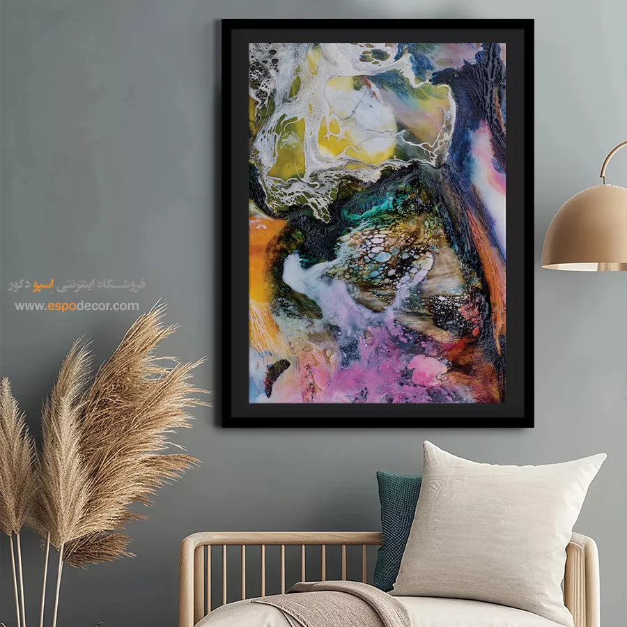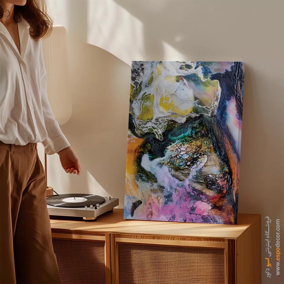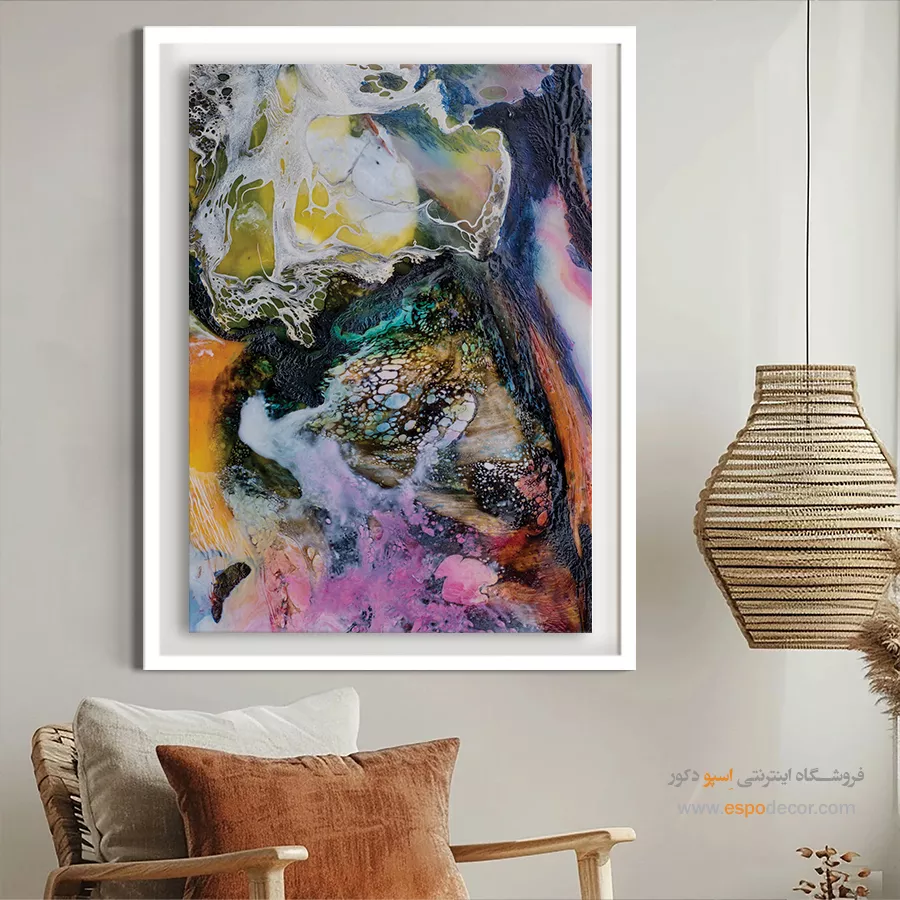 • ادامه طرح اصلی تا کناره‌های بوم: ما در اسپو دکور از این روش استفاده می‌کنیم تا تابلو حالت منسجم و یکپارچه داشته باشد و از نمای کناری نیز جذاب دیده شود.