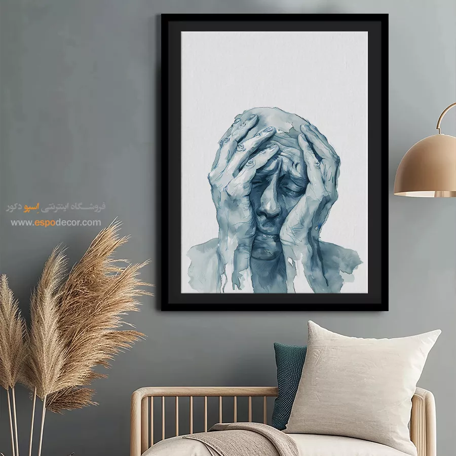 • انتخاب سایه‌های مختلف از رنگ دیوار: مانند تابلو آبی تیره روی دیوار آبی روشن، که حس آرامش و یکپارچگی در فضا ایجاد می‌کند.