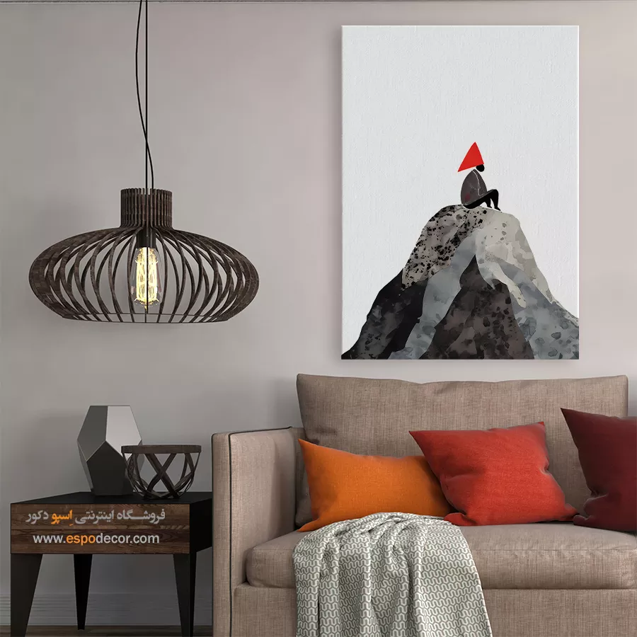 همچنین، استفاده از تابلوهای چندتکه با ابعاد کوچک تا متوسط یا یک تابلوی بزرگ با طرح عمودی (برای بلندتر نشان دادن سقف)، می‌تواند نقطه کانونی جذابی ایجاد کرده و کمبود نور را جبران نماید.