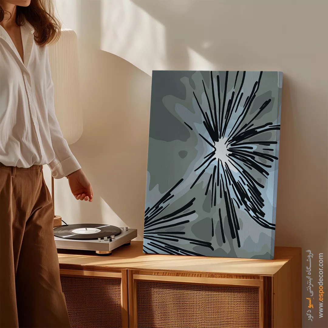 • ادامه طرح اصلی تا کناره‌های بوم: ما در اسپو دکور از این روش استفاده می‌کنیم تا تابلو حالت منسجم و یکپارچه داشته باشد و از نمای کناری نیز جذاب دیده شود.