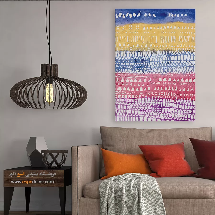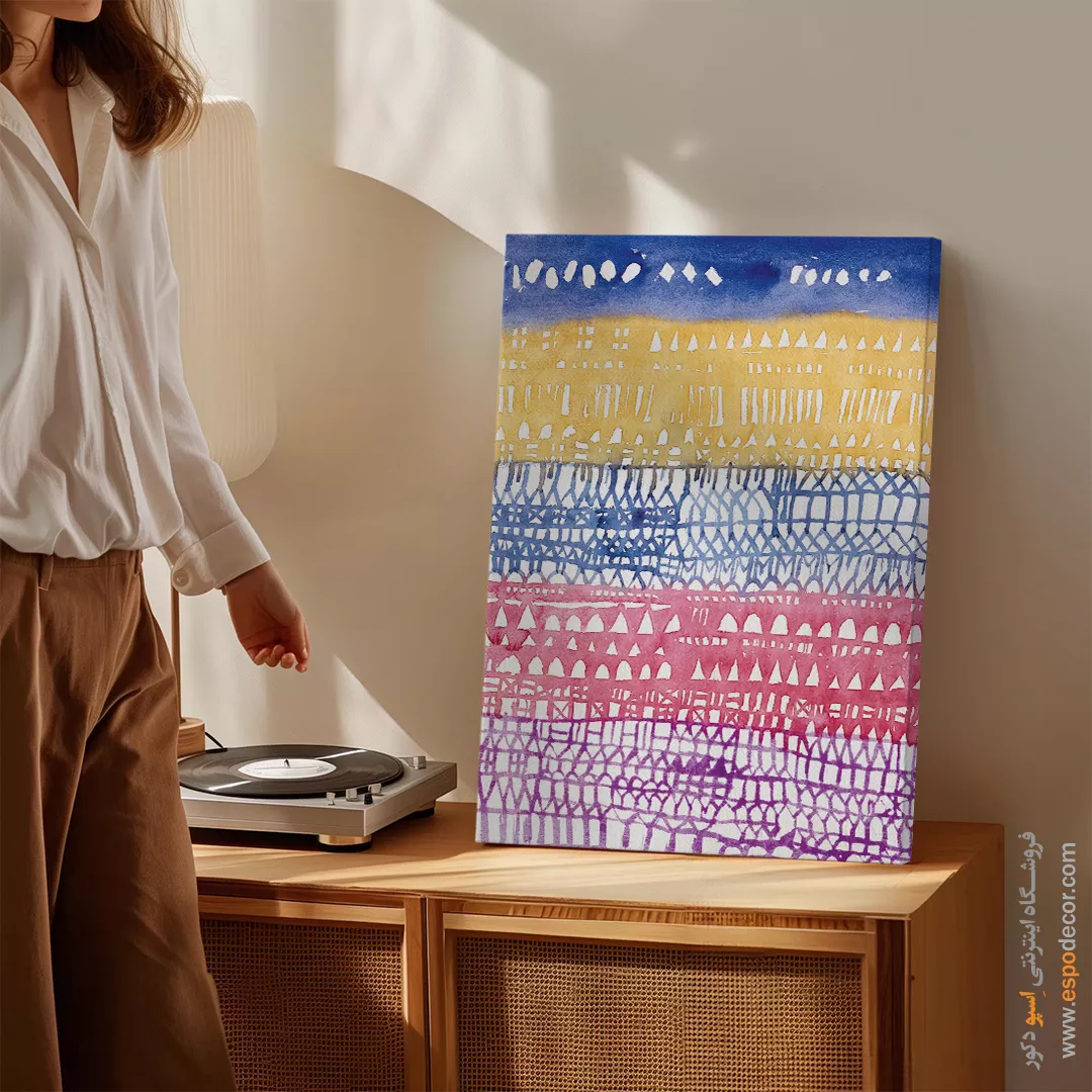 • ادامه طرح اصلی تا کناره‌های بوم: ما در اسپو دکور از این روش استفاده می‌کنیم تا تابلو حالت منسجم و یکپارچه داشته باشد و از نمای کناری نیز جذاب دیده شود.