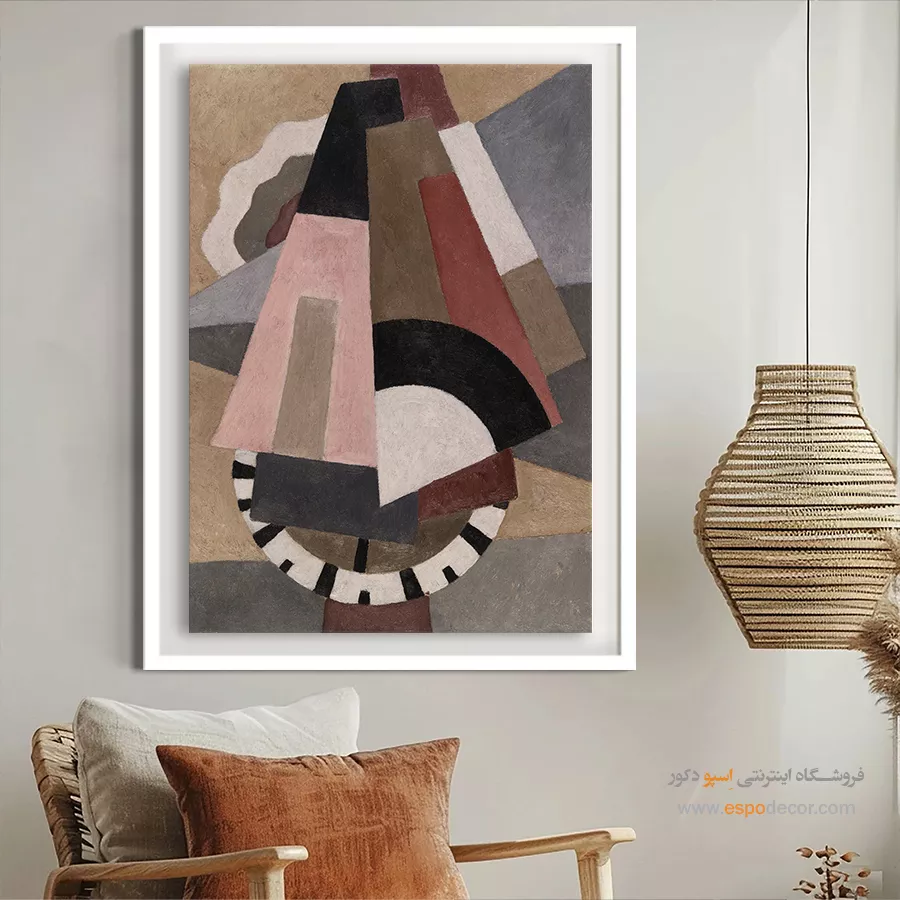 • استفاده از تابلویی با رنگ خنثی در پس‌زمینه: رنگ‌های سفید، خاکستری یا بژ، در حالی که رنگ اصلی دیوار یا رنگ‌های جزئی مبلمان و اکسسوری‌ها در طرح آن تکرار شده باشد. این روش تعادل را در فضا تضمین کرده و از شلوغی بصری جلوگیری می‌کند.