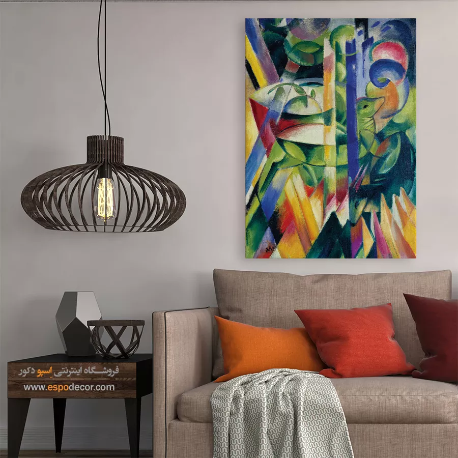 • انتخاب رنگ‌های مکمل یا متضاد: مانند تابلویی با تناژ نارنجی برای دیوار آبی، که تضاد جذاب و پویایی ایجاد می‌کند و تابلو را به نقطه کانونی تبدیل می‌کند.