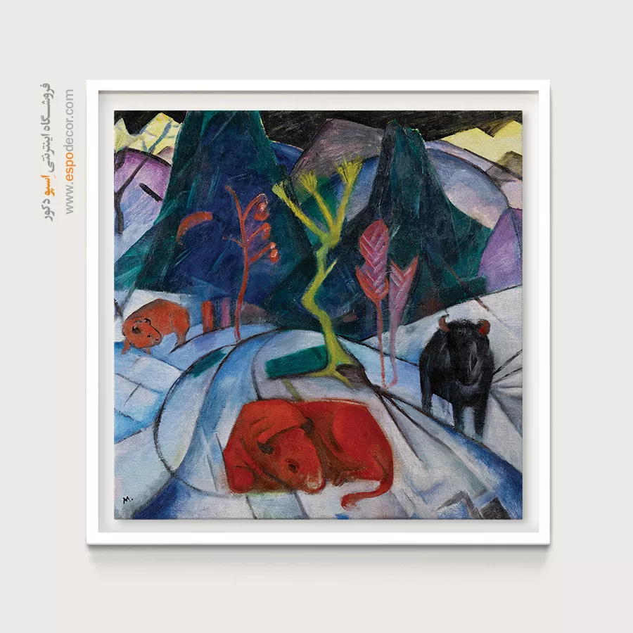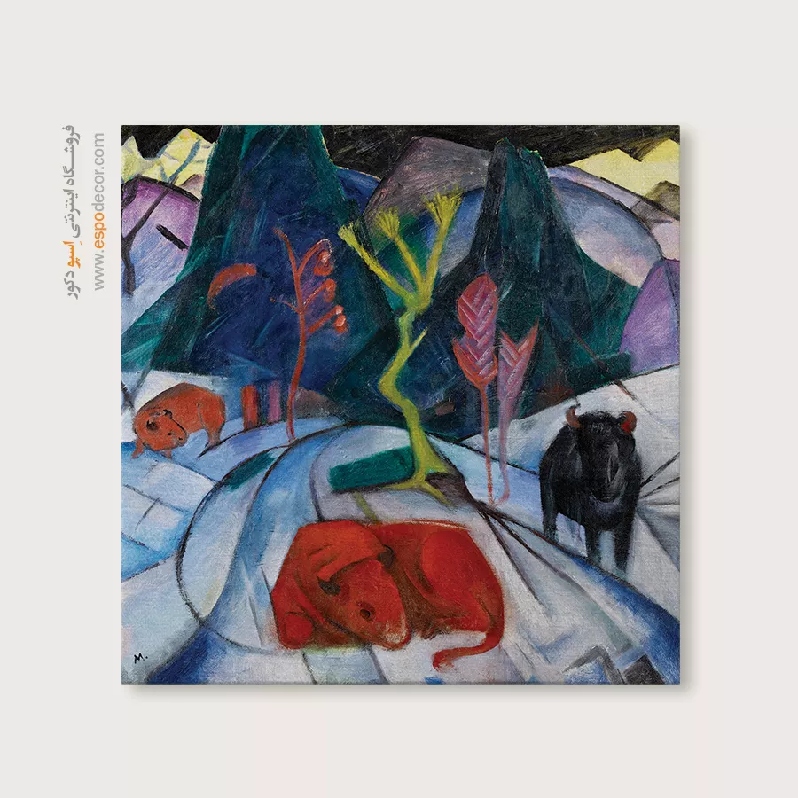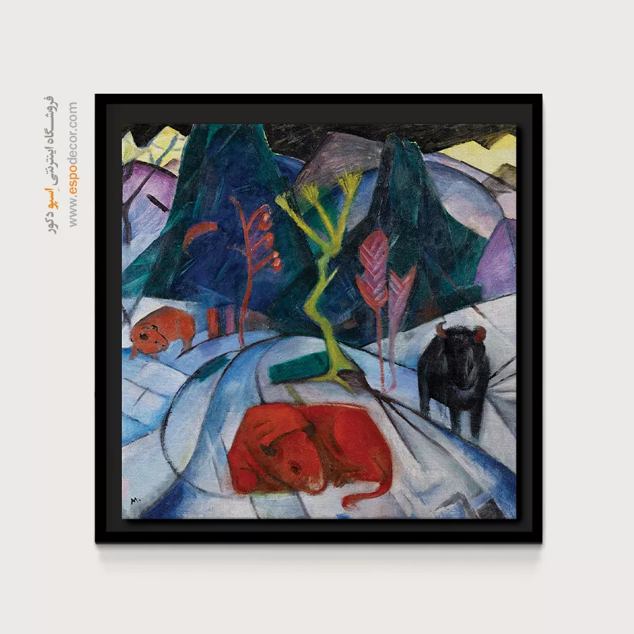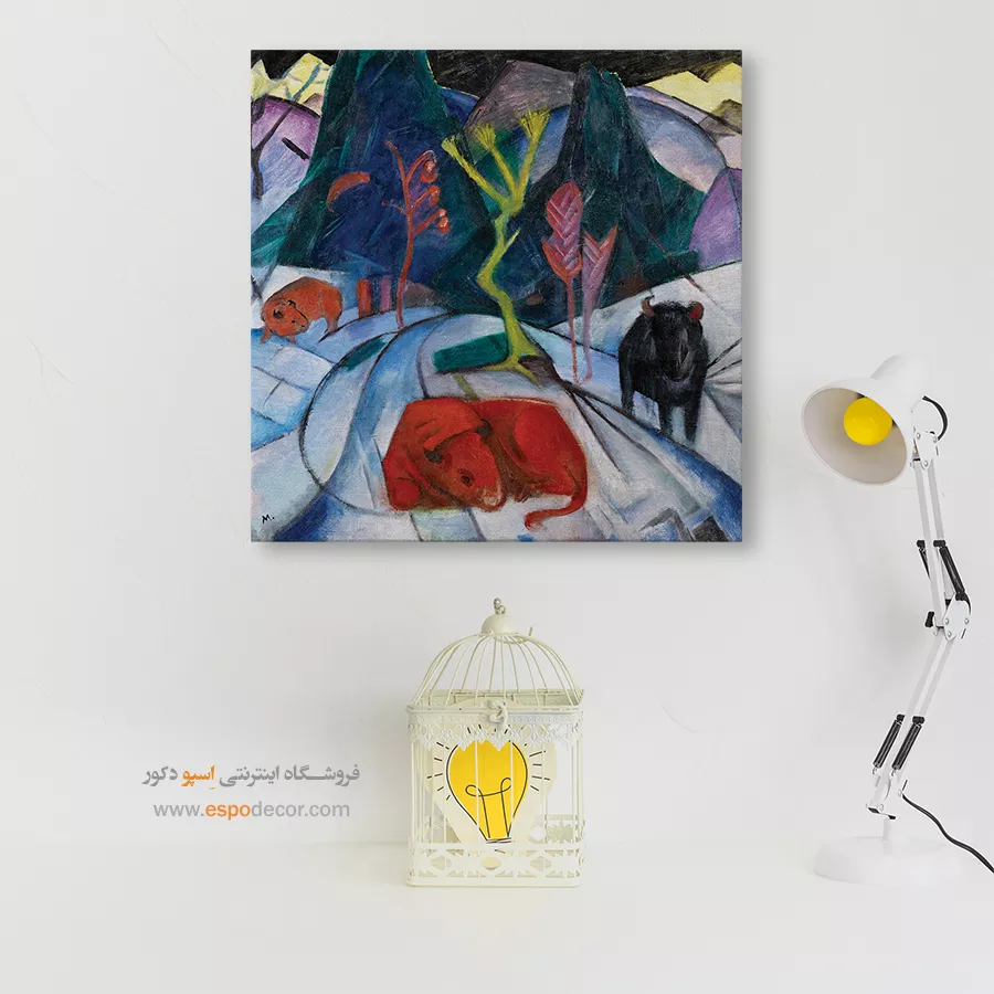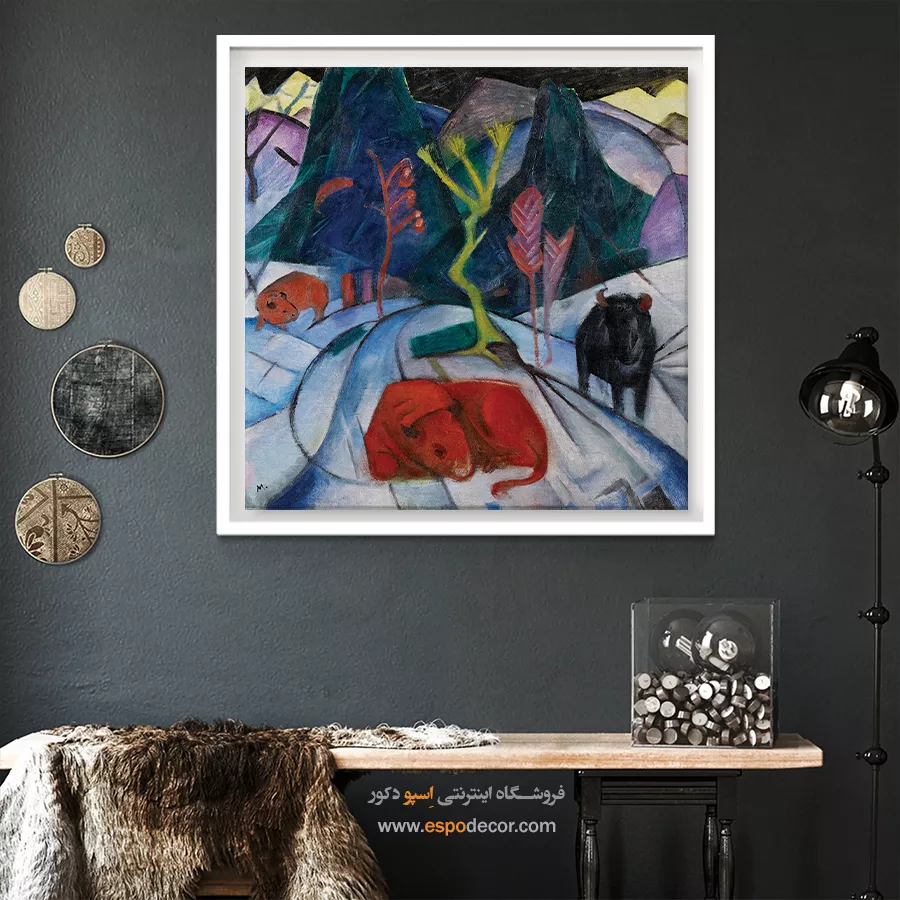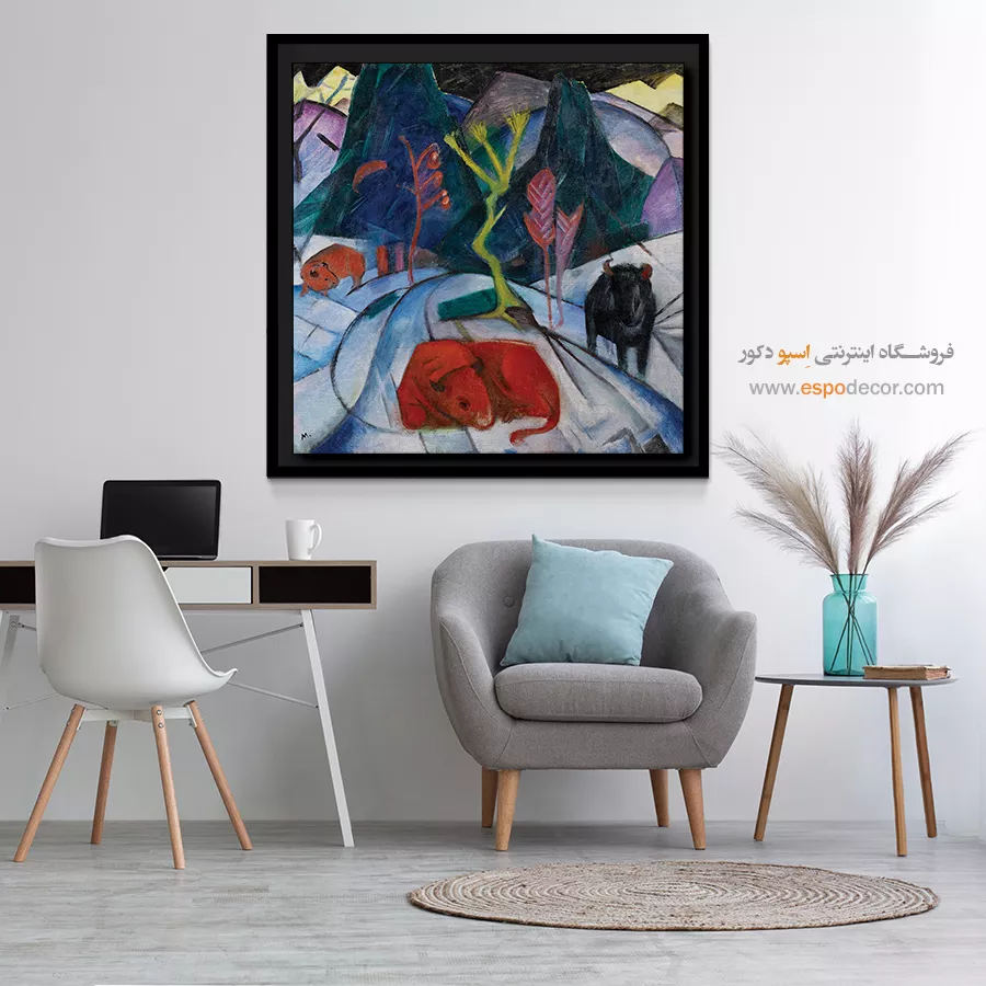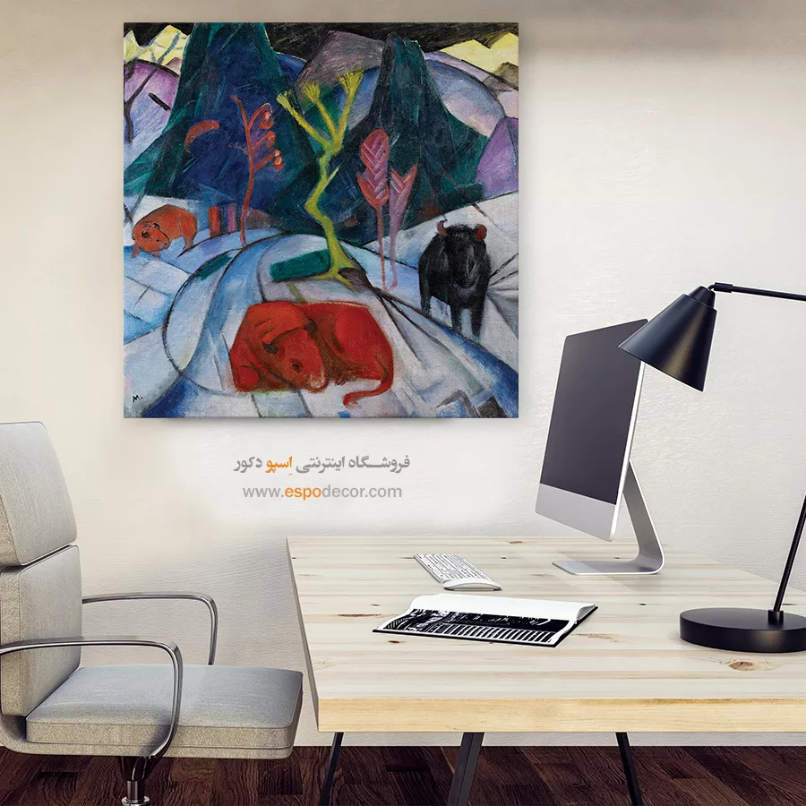 • انتخاب رنگ‌های مکمل یا متضاد: مانند تابلویی با تناژ نارنجی برای دیوار آبی، که تضاد جذاب و پویایی ایجاد می‌کند و تابلو را به نقطه کانونی تبدیل می‌کند.