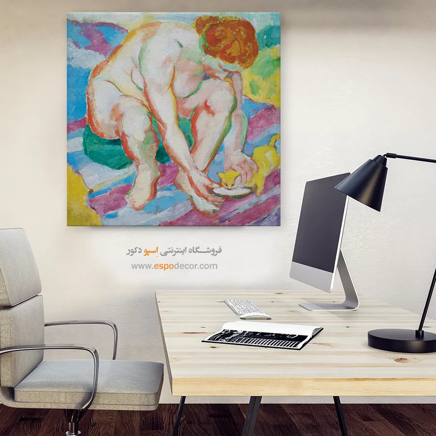 • انتخاب رنگ‌های مکمل یا متضاد: مانند تابلویی با تناژ نارنجی برای دیوار آبی، که تضاد جذاب و پویایی ایجاد می‌کند و تابلو را به نقطه کانونی تبدیل می‌کند.