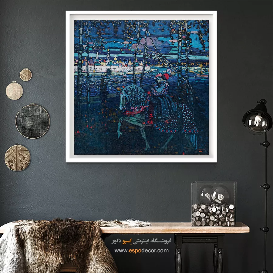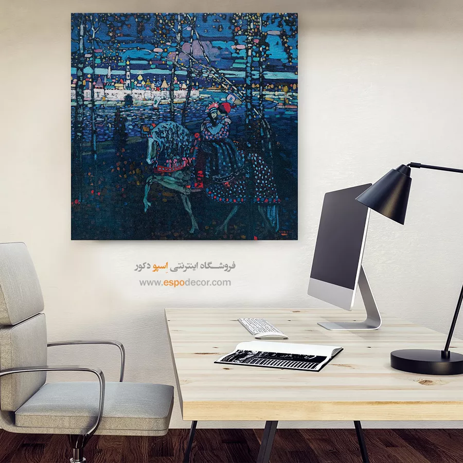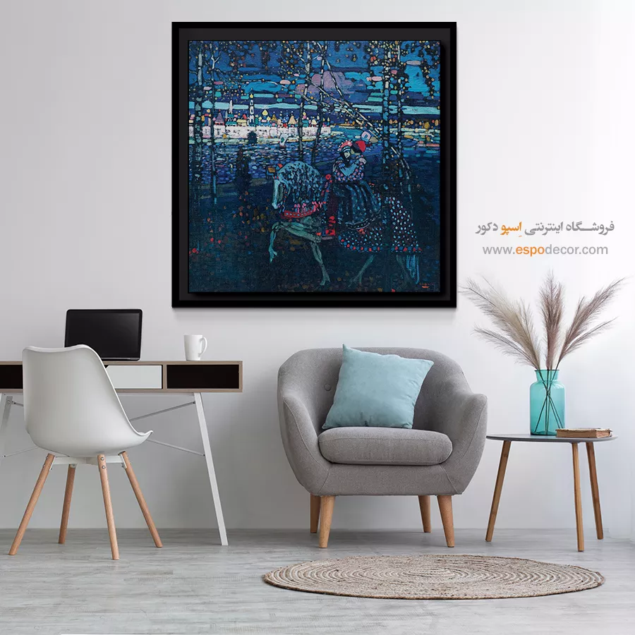 • انتخاب سایه‌های مختلف از رنگ دیوار: مانند تابلو آبی تیره روی دیوار آبی روشن، که حس آرامش و یکپارچگی در فضا ایجاد می‌کند.
