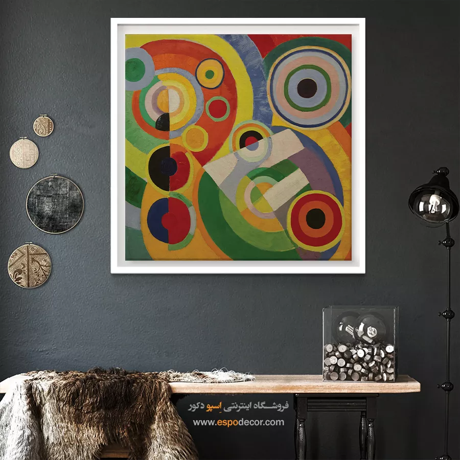• استفاده از تابلویی با رنگ خنثی در پس‌زمینه: رنگ‌های سفید، خاکستری یا بژ، در حالی که رنگ اصلی دیوار یا رنگ‌های جزئی مبلمان و اکسسوری‌ها در طرح آن تکرار شده باشد. این روش تعادل را در فضا تضمین کرده و از شلوغی بصری جلوگیری می‌کند.