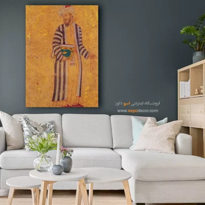 سبک کلاسیک: نیازمند شکوه و لوکس بودن است. تابلو بوم باید شامل نقاشی‌های طبیعت، پرتره‌های قدیمی، یا آثار رنسانسی با رنگ‌های غنی و عمیق باشد تا حس رسمی و لوکس فضا تقویت گردد.
