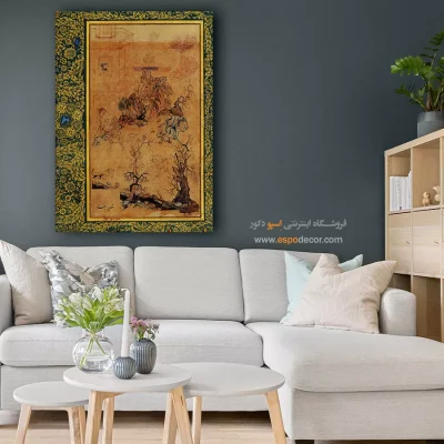 سبک کلاسیک: نیازمند شکوه و لوکس بودن است. تابلو بوم باید شامل نقاشی‌های طبیعت، پرتره‌های قدیمی، یا آثار رنسانسی با رنگ‌های غنی و عمیق باشد تا حس رسمی و لوکس فضا تقویت گردد.