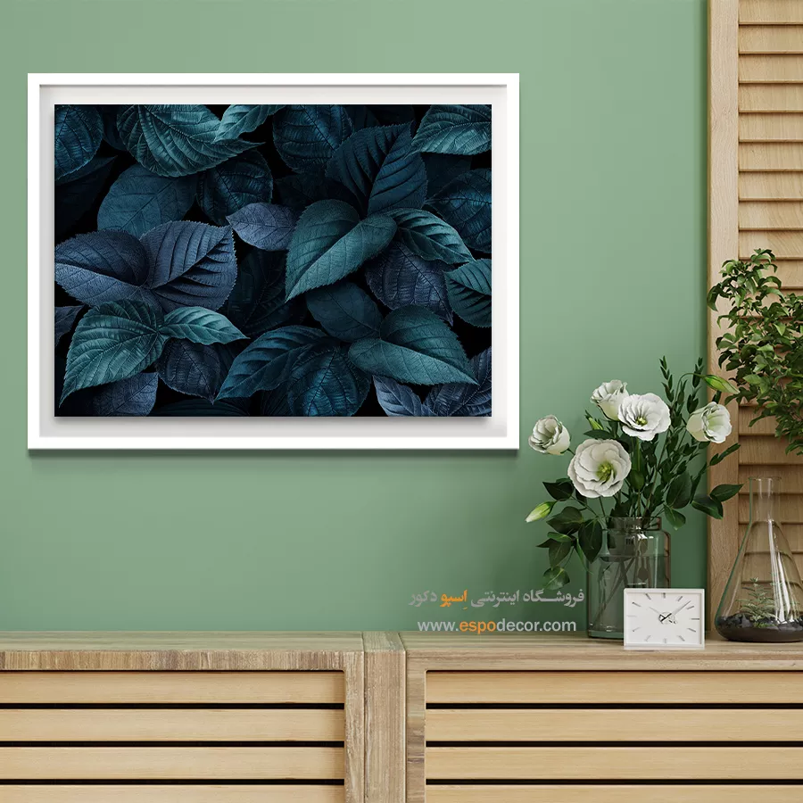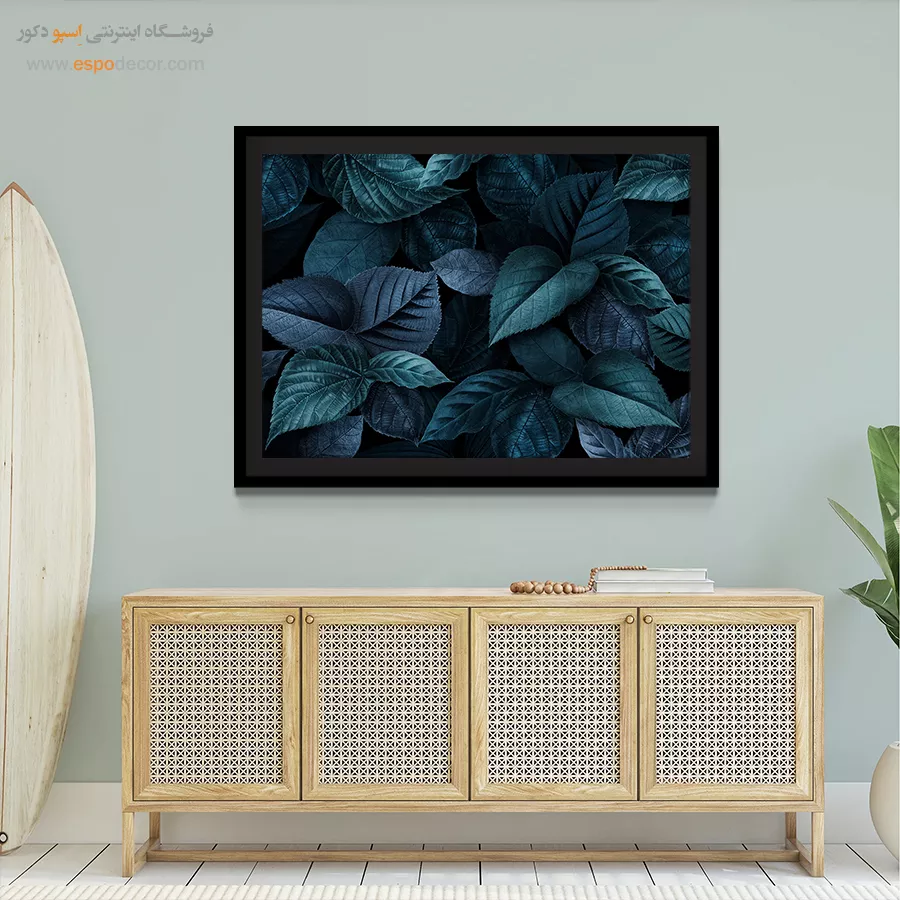 • انتخاب سایه‌های مختلف از رنگ دیوار: مانند تابلو آبی تیره روی دیوار آبی روشن، که حس آرامش و یکپارچگی در فضا ایجاد می‌کند.