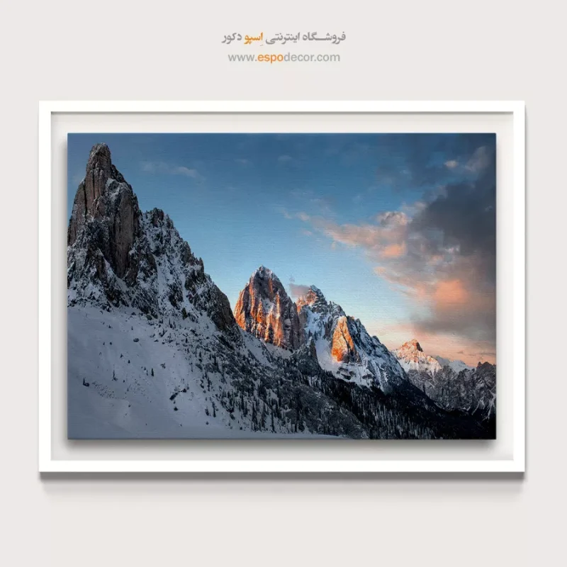 - لبه سفید: تصویر فقط روی سطح رویی چاپ شده و لبههای بوم خام و سفید باقی میماند و ظاهری سادهتر ایجاد میکند.