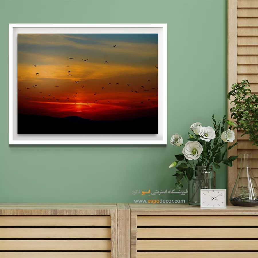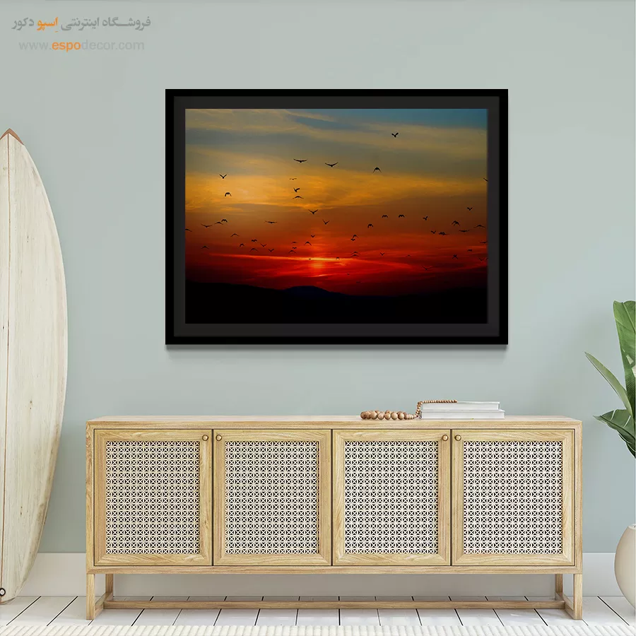 - انتخاب رنگهای مکمل یا متضاد: مانند تابلویی با تناژ نارنجی برای دیوار آبی، که تضاد جذاب و پویایی ایجاد میکند و تابلو را به نقطه کانونی تبدیل میکند.