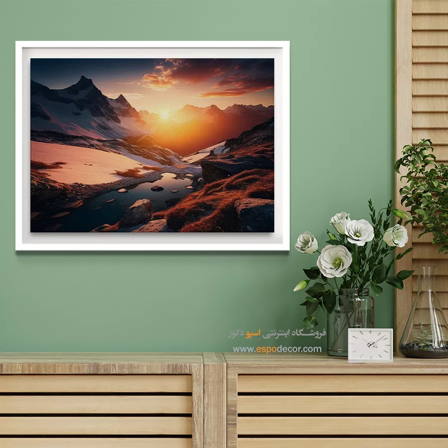 - نصب بالای مبلمان: اگر تابلوها بالای مبل یا کنسول نصب میشوند، لبه پایینی آنها باید حدود ۱۵ تا ۳۰ سانتیمتر بالاتر از لبه بالایی مبلمان باشد.