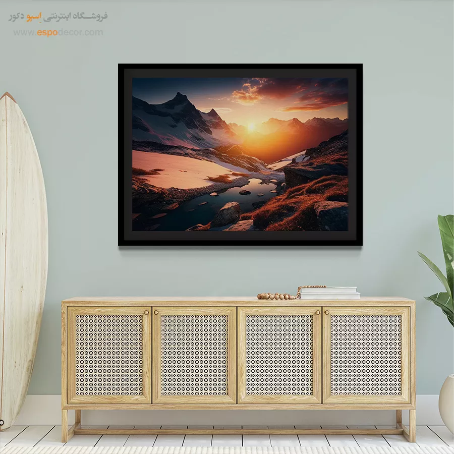 - ادامه طرح اصلی تا کنارههای بوم: ما در اسپو دکور از این روش استفاده میکنیم تا تابلو حالت منسجم و یکپارچه داشته باشد و از نمای کناری نیز جذاب دیده شود.