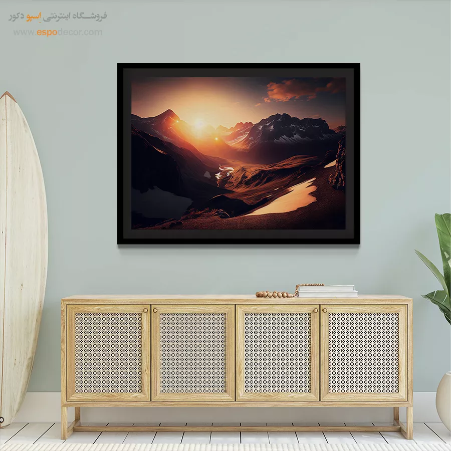 - ادامه طرح اصلی تا کنارههای بوم: ما در اسپو دکور از این روش استفاده میکنیم تا تابلو حالت منسجم و یکپارچه داشته باشد و از نمای کناری نیز جذاب دیده شود.