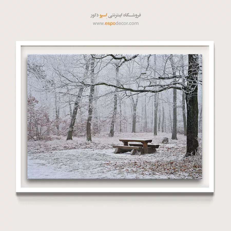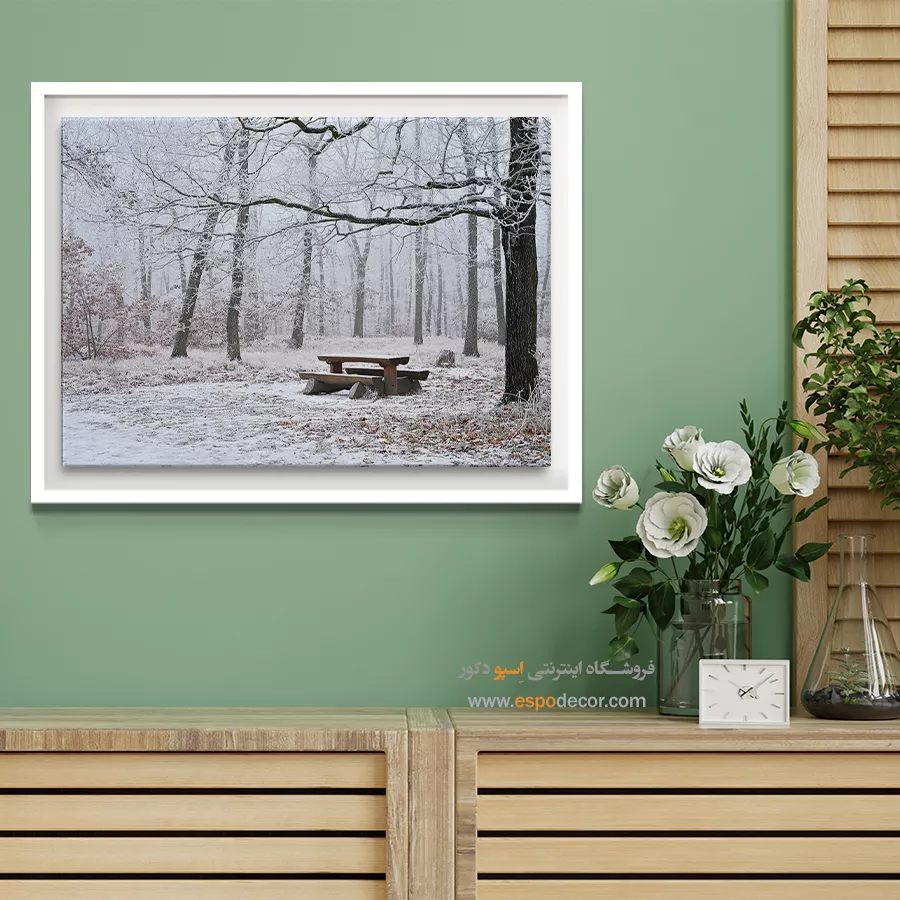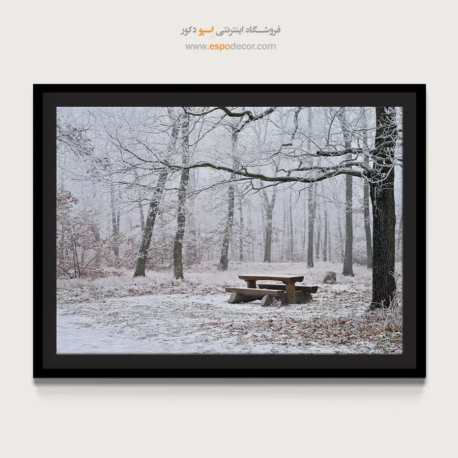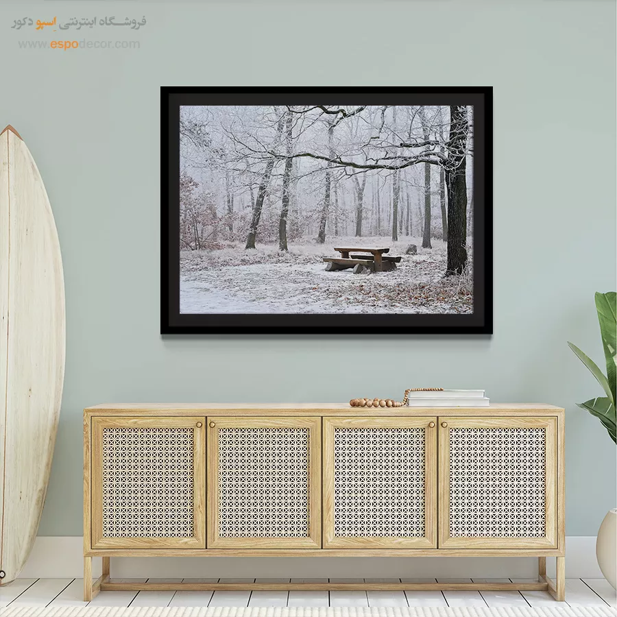 تصویری است که روی کاغذ عکاسی یا متریال صاف چاپ شده و مستقیماً روی یک تخته چوبی صاف (معمولاً MDF یا فیبر) با ضخامت کم پرس میشود و فاقد هرگونه قاب و پوشش شیشهای است. - تابلو قابدار معمولی: