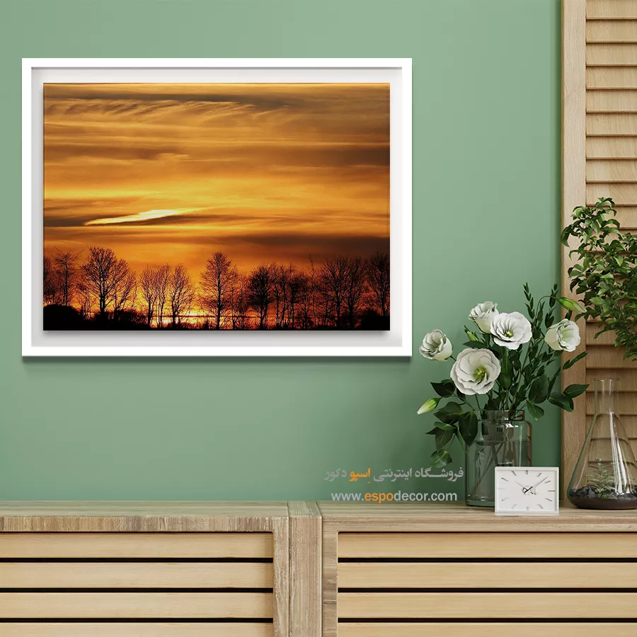 - انتخاب رنگهای مکمل یا متضاد: مانند تابلویی با تناژ نارنجی برای دیوار آبی، که تضاد جذاب و پویایی ایجاد میکند و تابلو را به نقطه کانونی تبدیل میکند.