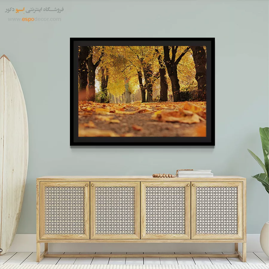 تصویری است که روی کاغذ عکاسی یا متریال صاف چاپ شده و مستقیماً روی یک تخته چوبی صاف (معمولاً MDF یا فیبر) با ضخامت کم پرس میشود و فاقد هرگونه قاب و پوشش شیشهای است. - تابلو قابدار معمولی: