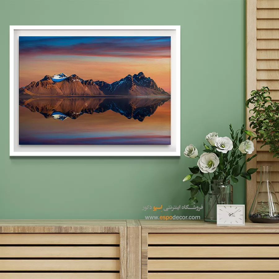 - انتخاب رنگهای مکمل یا متضاد: مانند تابلویی با تناژ نارنجی برای دیوار آبی، که تضاد جذاب و پویایی ایجاد میکند و تابلو را به نقطه کانونی تبدیل میکند.